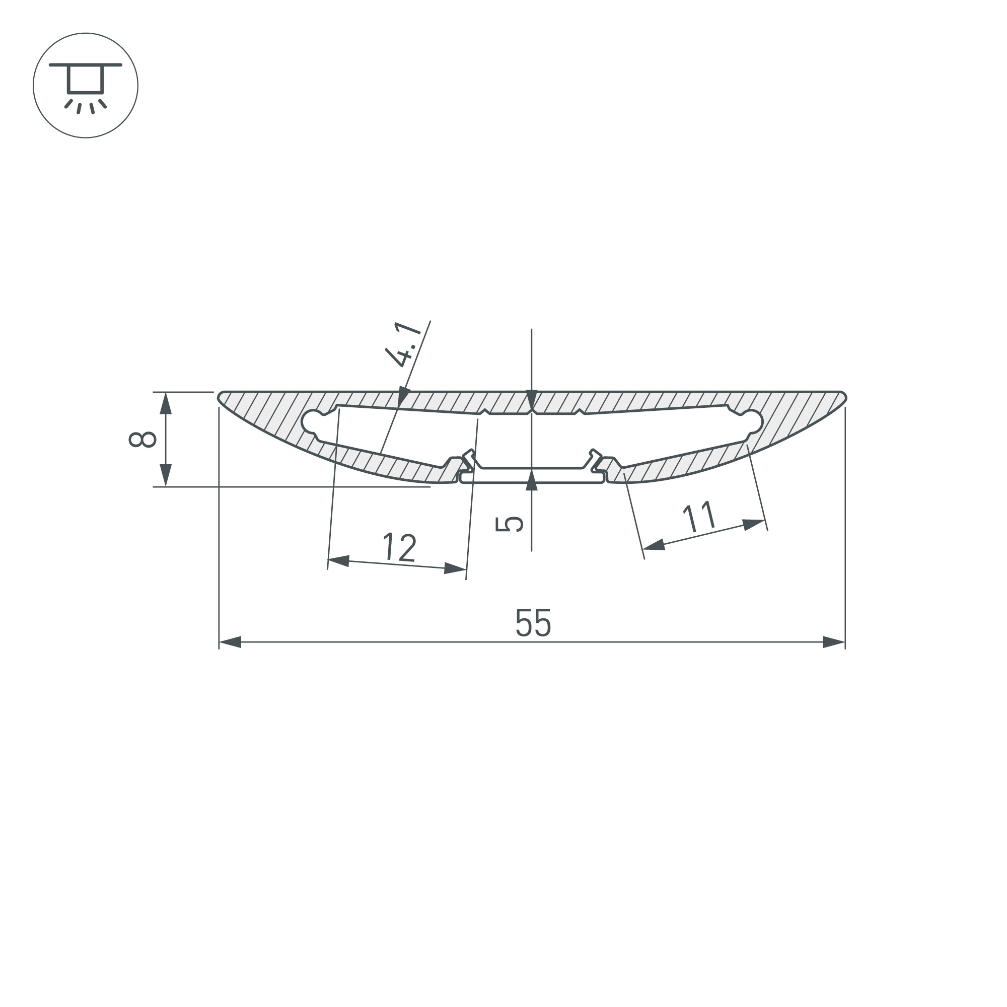 Алюминиевый анодированный профиль для светодиодных лент и линеек (2 по 10 мм). Ленты устанавливаются под алюминиевую часть профиля, по бокам от экрана, что обеспечивает мягкий свет. Габаритные размеры (L×W×H): 2000x54,9x8 мм. Ширина площадки для ленты 33,4 мм, рекомендуется устанавливать ленту шириной 10 мм в два ряда. Экраны, заглушки и другие аксессуары приобретаются отдельно. Цена за 1 метр.