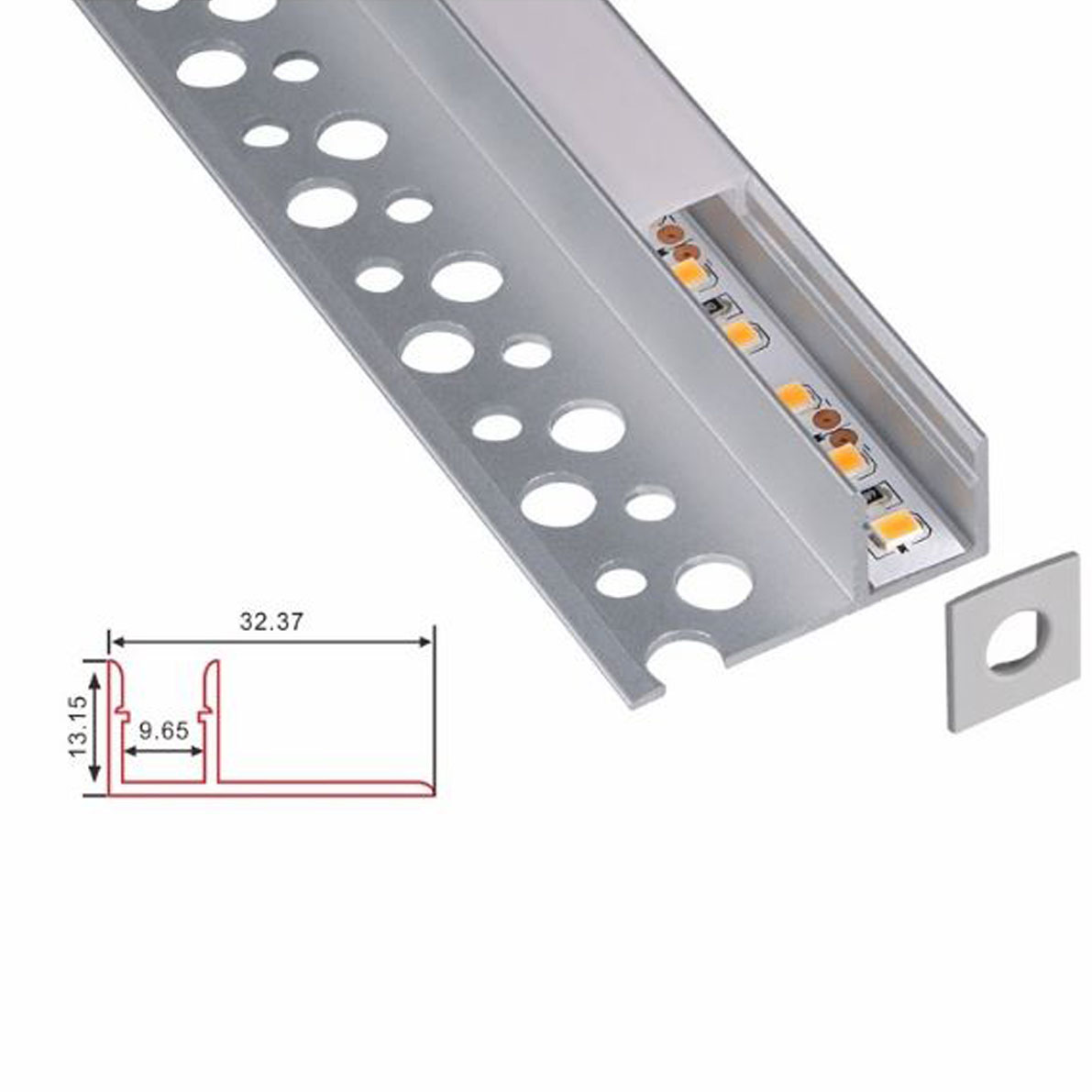 Цена указана за комплект. Алюминиевый анодированный профиль встраиваемый в гипсокартон. Для лент шириной до 9,6мм. Размеры 2500*32,37/9,65*13,15мм. Вес 700г. В комплекте с матовым рассеивателем.