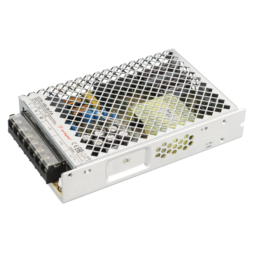 Источник напряжения с гальванической развязкой для светодиодных изделий. Входное напряжение 100-240 VAC. Выходные параметры: 36 В, 4.3 А, 155 Вт. Встроенный PFC >0.5. Негерметичный алюминиевый сетчатый корпус IP 20. Габаритные размеры длина 159 мм, ширина 97 мм, высота 30 мм. Гарантийный срок 3 года.