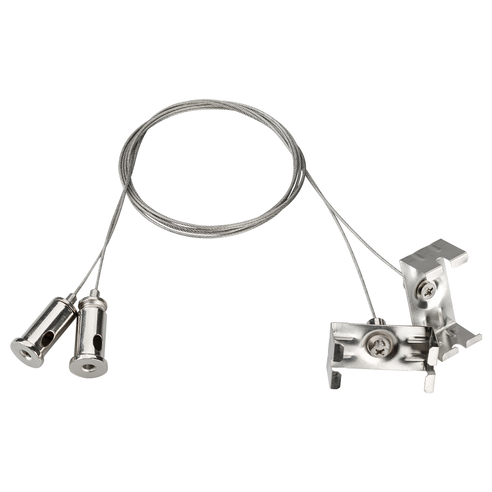 Подвес для профиля ARH-WIDE-W39 . Цвет - серебристый. В упаковке: трос 1 м с держателем - 2 шт., шуруп с дюбелем - 2 шт. Максимальная нагрузка на 1 трос 15 кг. Цена указана за 1 шт. Поставляется в упаковке по 2 шт.