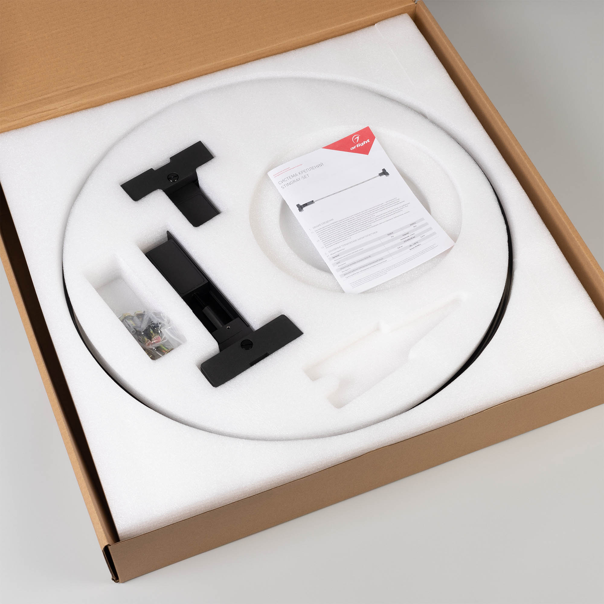 Система креплений Stingray для светодиодной ленты. Цвет - черный. Фиксирует светодиодную ленту в свободном пространстве между двумя стенами. Максимальная длина 10 м. В комплект входит: гибкая стальная полоса для ленты 10 м шириной 15 мм, 2 настенных крепления, аксессуары для фиксации и монтажа. Лента и источник питания комплектуются по запросу.