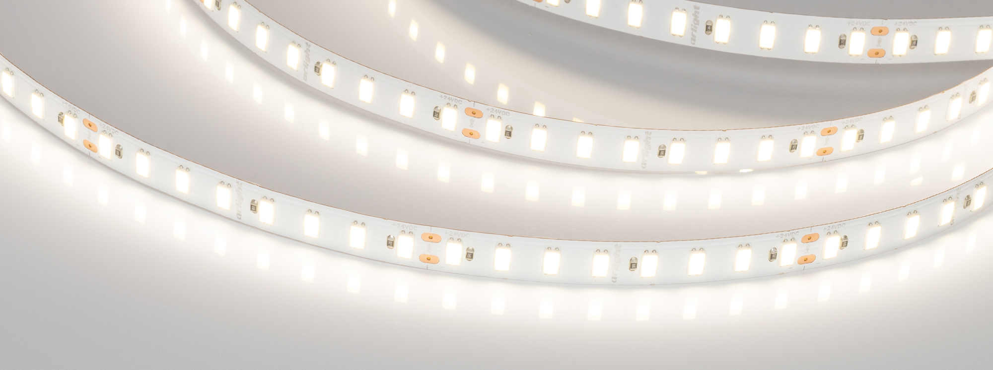 Светодиодная высокоэффективная лента ULTRA серии C112. Светодиоды SMD 5630, 112 шт/м, белая плата шириной 10 мм, скотч 3M. Цвет ДНЕВНОЙ 4000K, высокая световая эффективность 160 лм/Вт, индекс цветопередачи CRI>80, угол 120°. Питание 24 В, мощность 19.2 Вт/м (96 Вт на 5 м). Размеры 5000x10x1.3 мм. Мин. отрезок 71.43 мм, 8 светодиодов. Цена за 1 м. Обязательна установка на профиль.