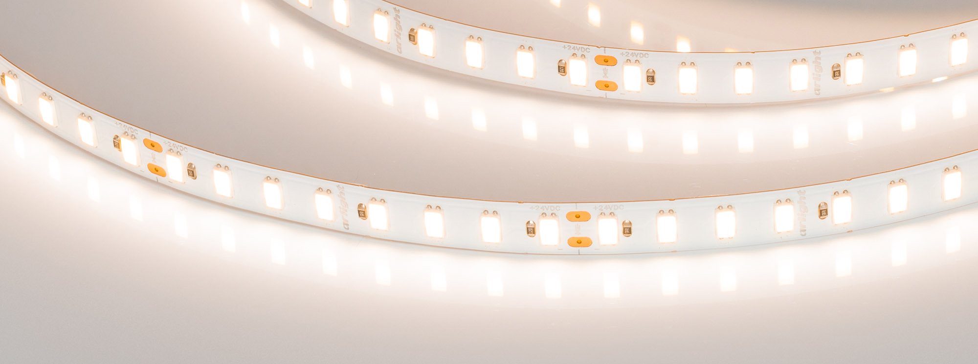 Светодиодная высокоэффективная лента ULTRA серии C112. Светодиоды SMD 5630, 112 шт/м, белая плата шириной 10 мм, скотч 3M. Цвет ТЕПЛЫЙ 2700K, высокая световая эффективность 160 лм/Вт, индекс цветопередачи CRI>80, угол 120°. Питание 24 В, мощность 19.2 Вт/м (96 Вт на 5 м). Размеры 5000x10x1.3 мм. Мин. отрезок 71.43 мм, 8 светодиодов. Цена за 1 м. Обязательна установка на профиль.