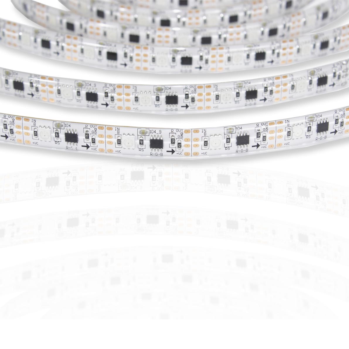 Светодиодная управляемая лента. Тип светодиода 5050, 30 светодиода на метр (150шт на 5 метров), угол свечения 120 градусов, цвет свечения RGB. Напряжение 12V, мощность 36W на 5 метров (7,2W на метр), размеры 10x2x5000мм. Класс защиты IP65. Катушка 5 метров. Кратность реза 1 светодиод (33,3мм).