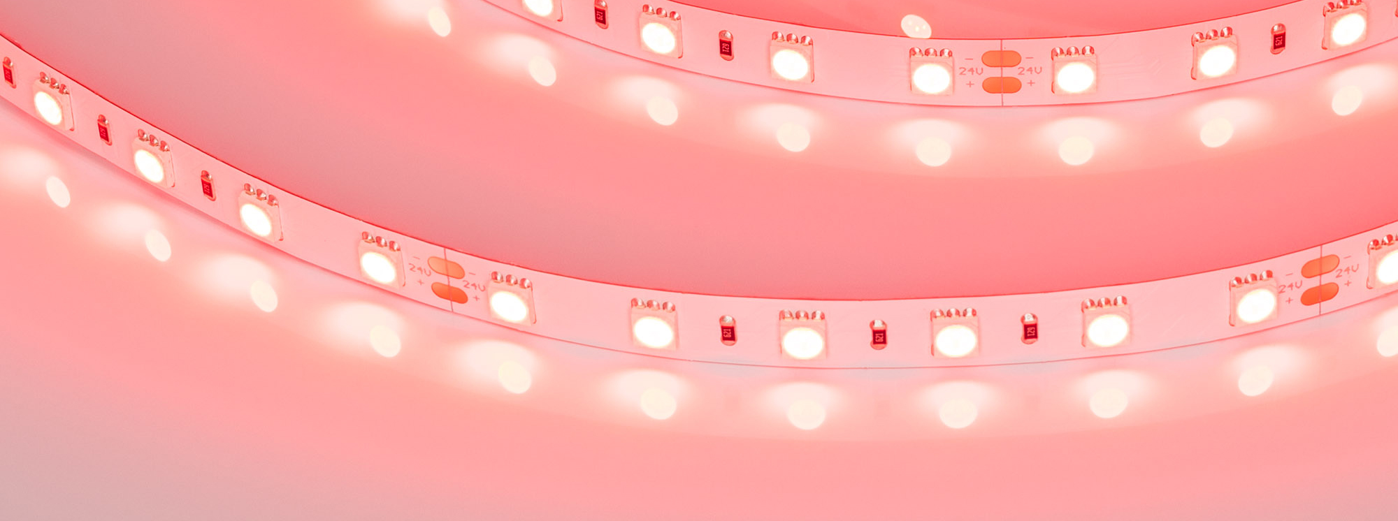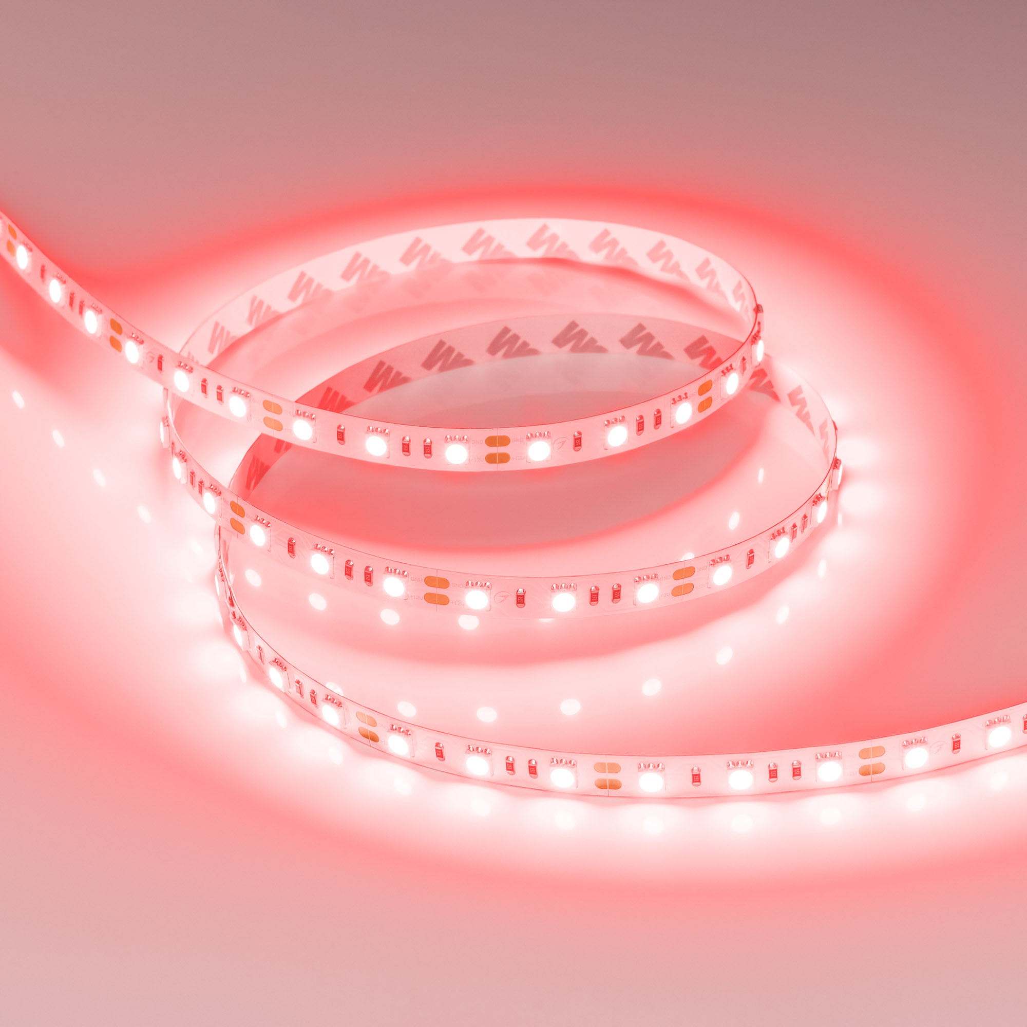Светодиодная лента RT серии B60. Светодиоды SMD 5060, 60 шт/м, белая плата шириной 10 мм, скотч 3M. Цвет КРАСНЫЙ 625 нм, угол 120°. Питание 12 В, мощность 14.4 Вт/м (72 Вт на 5 м). Размеры 5000x10x2.2мм. Мин. отрезок 50 мм, 3 светодиода. Цена за 1 м. Обязательна установка на профиль.
