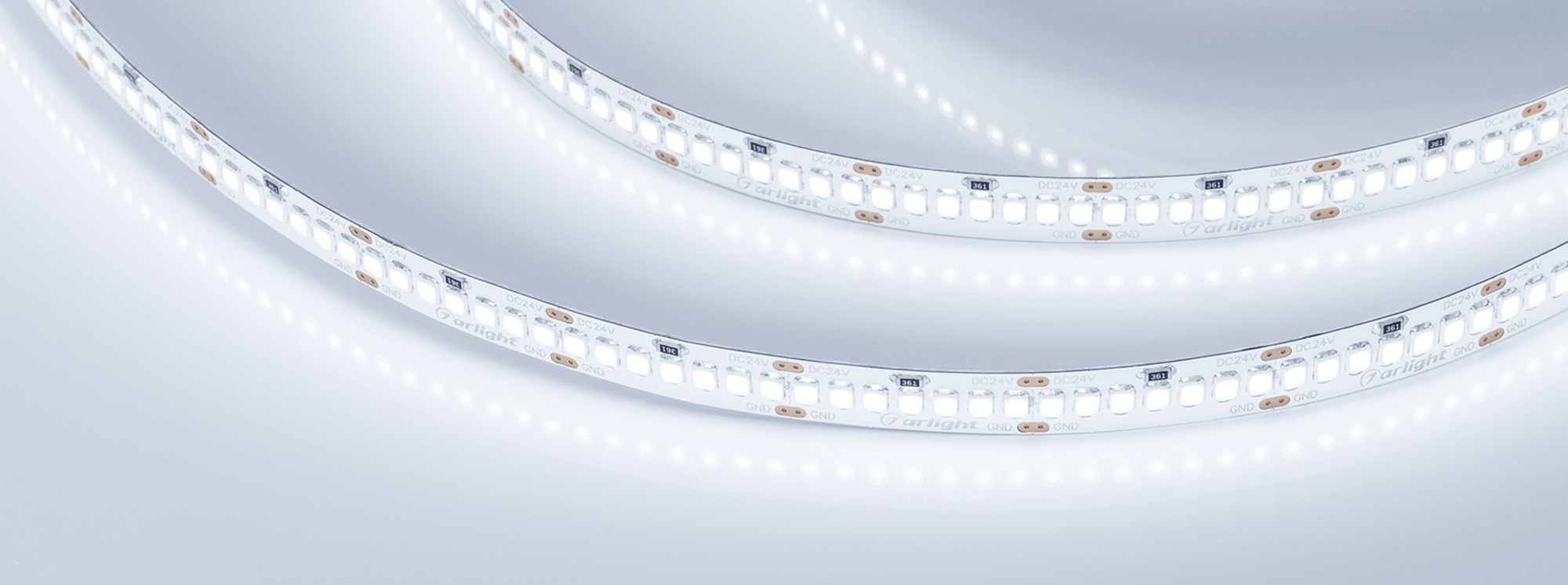 Поставка под заказ от 1000 м. Гибкая лента LUX, светодиоды smd 2835, 252 шт/м (1260 шт на 5м), белая плата 10 мм, скотч 3М. Цвет ХОЛОДНЫЙ 7700-9600K. Питание 24V, мощность 10 Вт/м (50 Вт на 5м), угол 120°, цветопередача CRI>85. Размеры 5000х10x1.5мм. Мин.отрезок 27.77мм, 7 светодиодов. Цена за 1м.