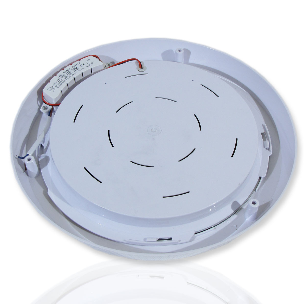 Накладной потолочный светодиодный светильник. Круглый, белый корпус с прозрачным рассеивателем. Напряжение 220V, мощность 12W, цвет свечения белый 6000-6500K, световой поток 1200Lm. Размеры 318x32мм.