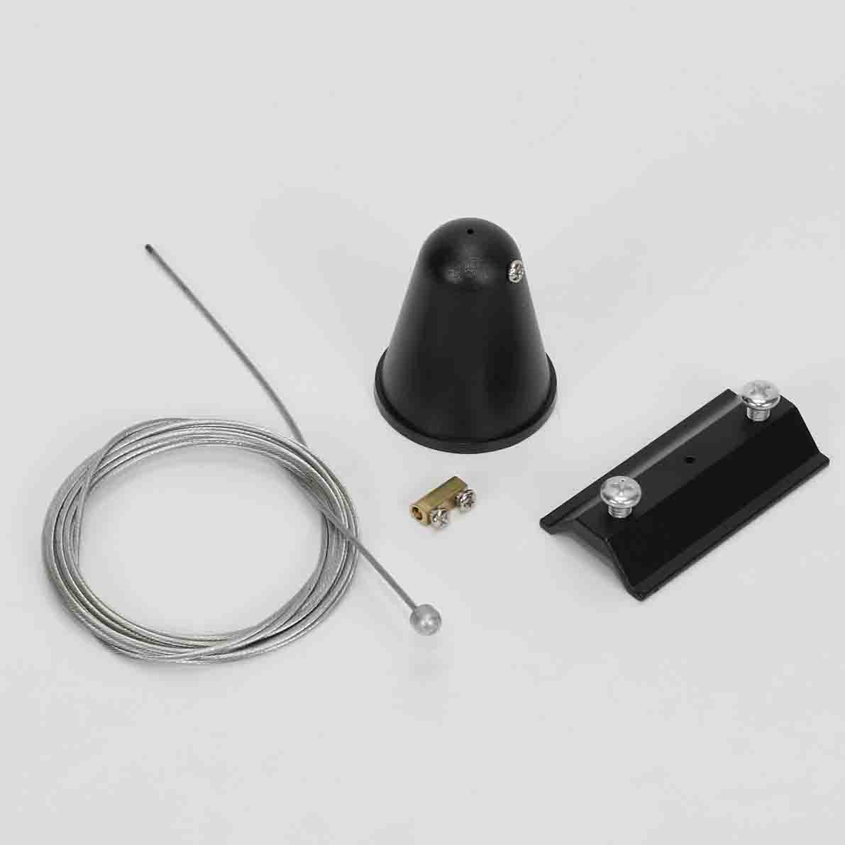 Подвес для однофазного трека. Корпус черный. Диаметр троса 1,4мм, длина 2000мм. Ширина крепежной скобы 30,7мм. Вес 55гр.
