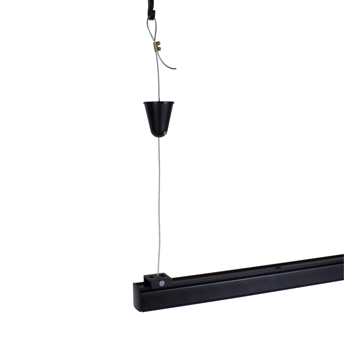 Подвес для трехфазного трека. Корпус черный. Диаметр троса 1,5мм, длина 1950мм. Вес 50г.