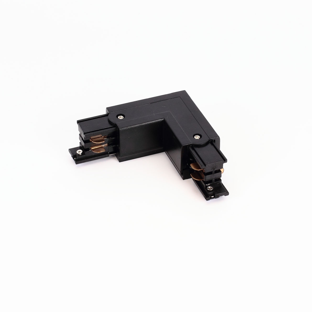 Соединитель угловой для четырехпроводного трека (заземление с внутренней стороны угла). Цвет корпуса черный. Размеры 100х100х33мм. Вес 95г.