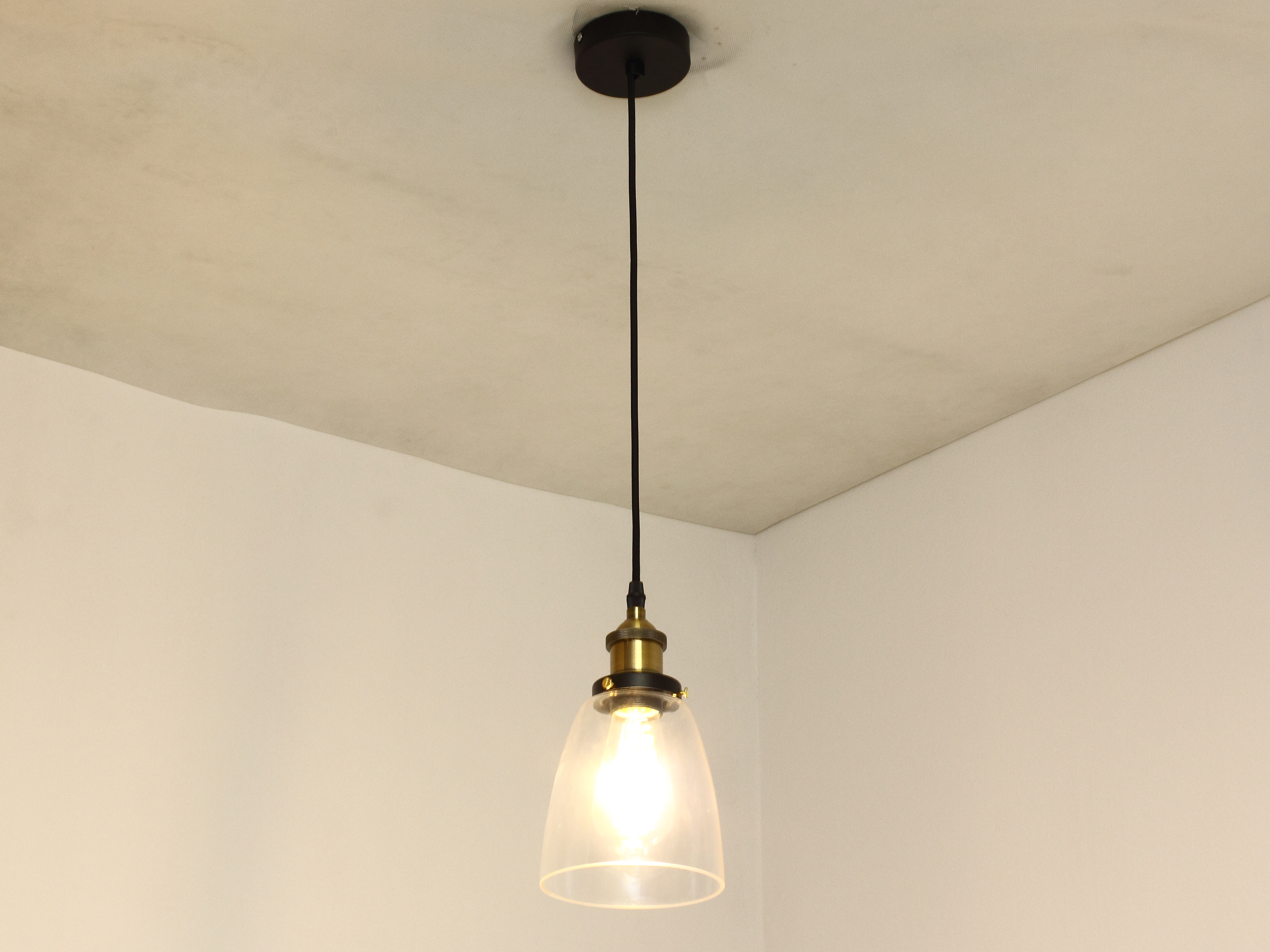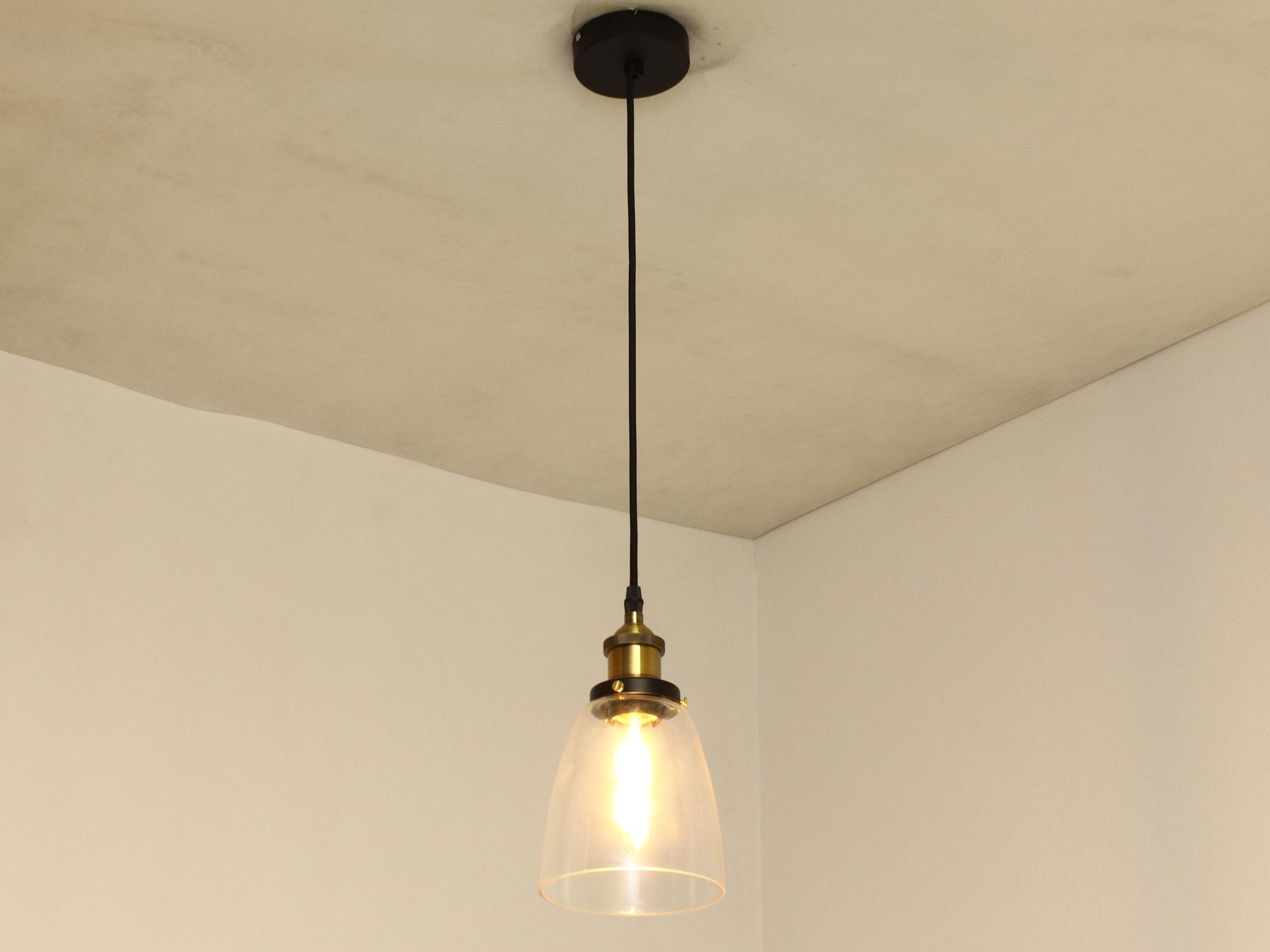 Подвесной стеклянный светильник в стиле лофт. Входное напряжение 220-240V, цоколь Е27, максимальная мощность до 60Вт. Диаметр абажура 140мм, высота 160мм. Длина регулируемого подвеса 900мм. Провод в тканевой оплетке. Вес 1000г. Лампа в комплект не входит.