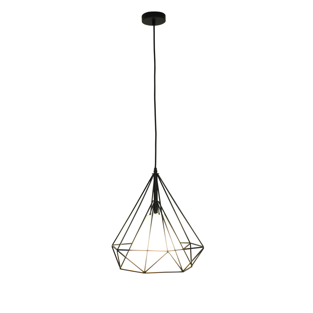 Подвесной металлический светильник в стиле лофт. Цвет корпуса черный. Входное напряжение 220-240V, цоколь Е27, максимальная мощность до 60Вт. Диаметр 370мм, высота 440мм. Длина регулируемого подвеса из плетеного провода 600мм. Вес 2300г. Лампа в комплект не входит.
