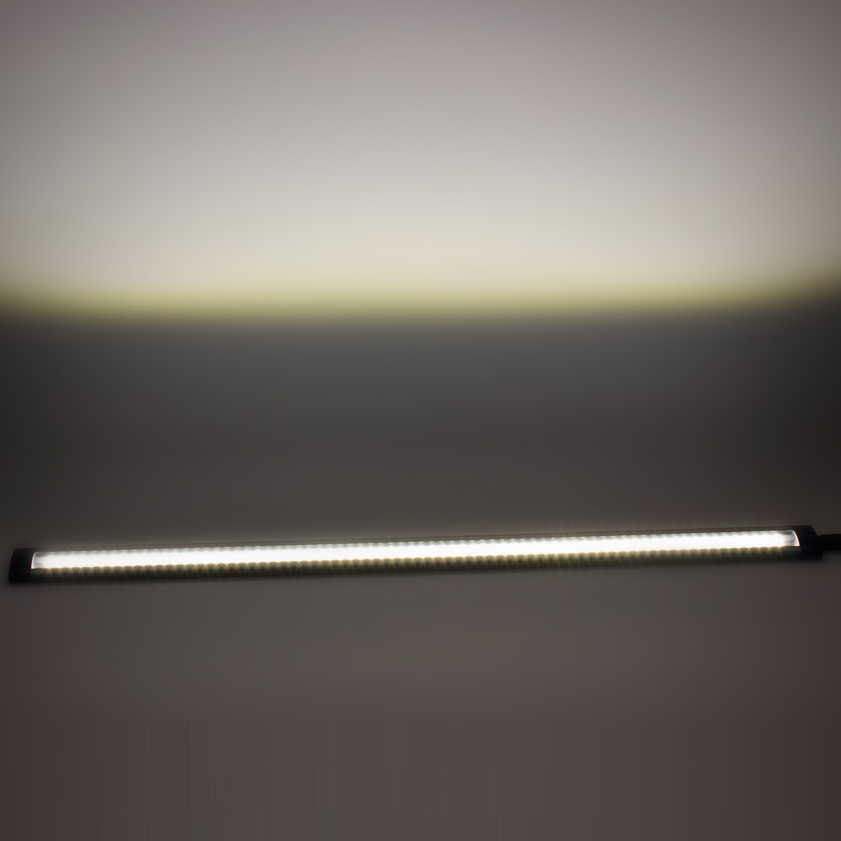 Светильник линейный. Используется для подсветки мебели, витрин, рабочих поверхностей кухни. Напряжение 12В, мощность 5Вт, цвет свечения дневной белый 4000К, угол свечения 90 градусов. Диаметр гнезда 3,5х1,5мм. Размеры 500х30х8мм. Вес 150гр.