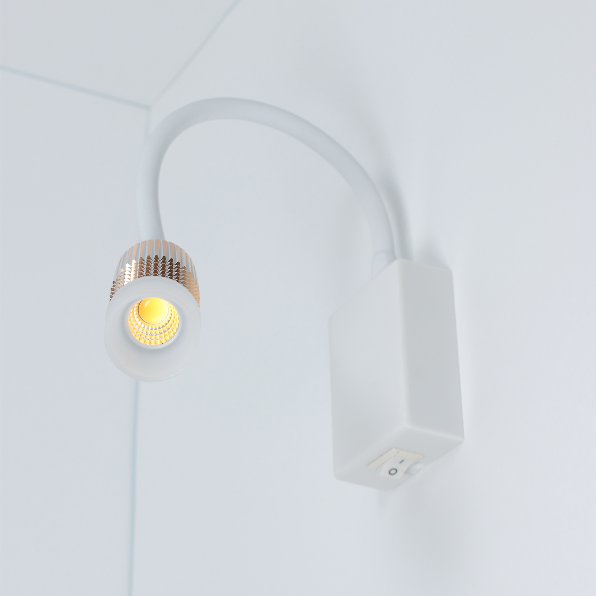 Светильник светодиодный прикроватный на гибкой ножке. Цвет корпуса белый с медью. Напряжение 85-265В, мощность 5Вт, световой поток 400Лм, цвет свечения теплый белый 3100К, угол свечения 60 градусов. Размеры 445x60x29мм. Плафон светильника: диаметр 34мм, высота 67мм.. Вес 270г. Используется для подсветки прикроватной области или как светильник для чтения.