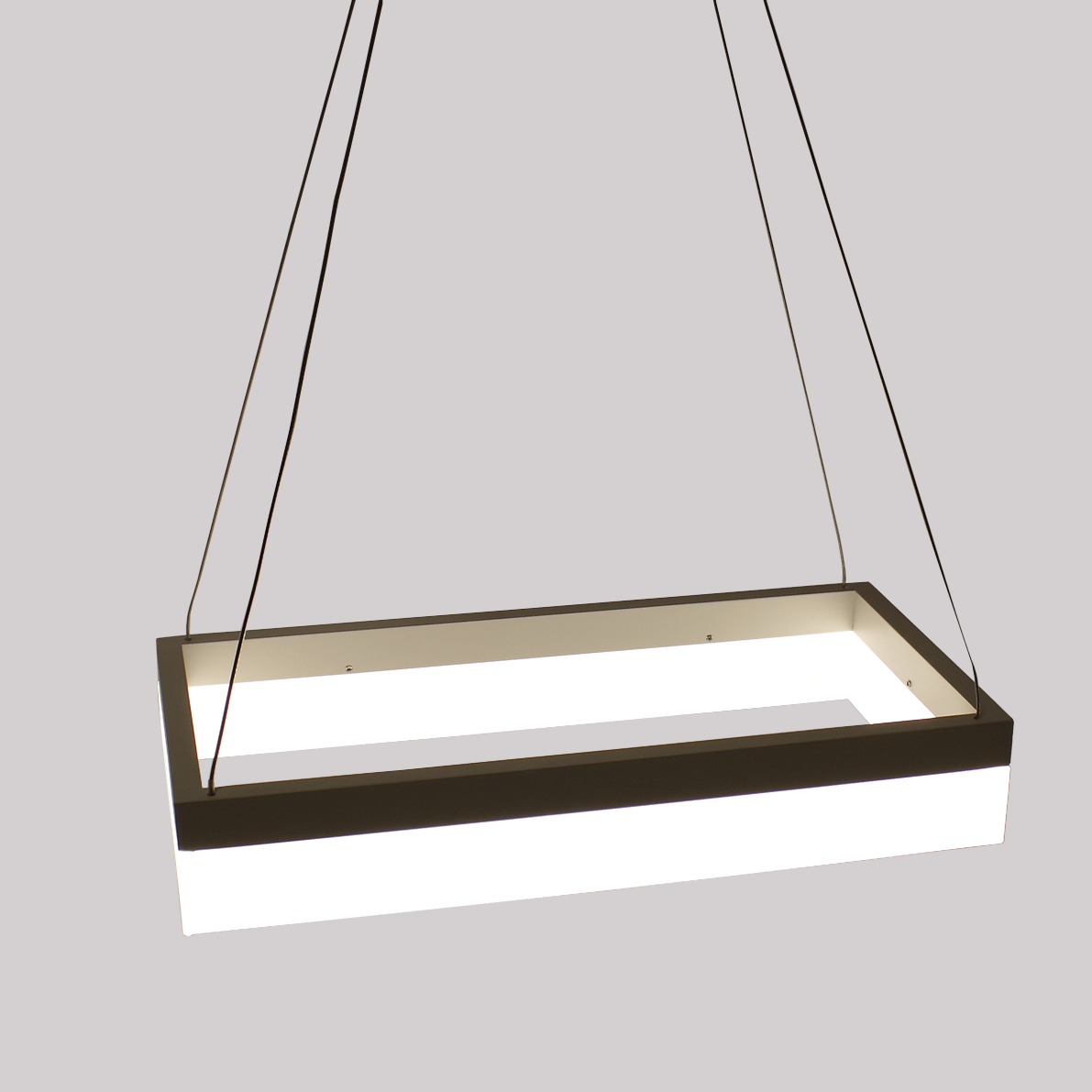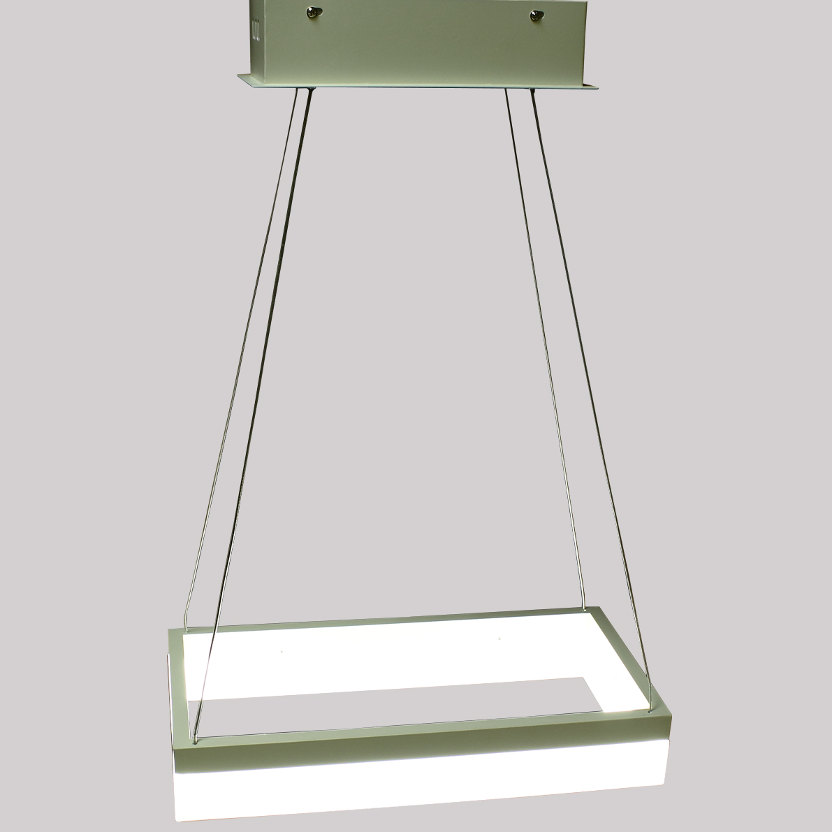 Светодиодная люстра. Прямоугольный белый корпус. Входное напряжение 180-240V, мощность 22W. Цвет свечения дневной белый 4000-4500К, световой поток 1650Lm, угол свечения 120 градусов. Размеры 400х200x100мм. Длина подвеса регулируется. Длина подвеса 1000мм. Вес 2300гр.