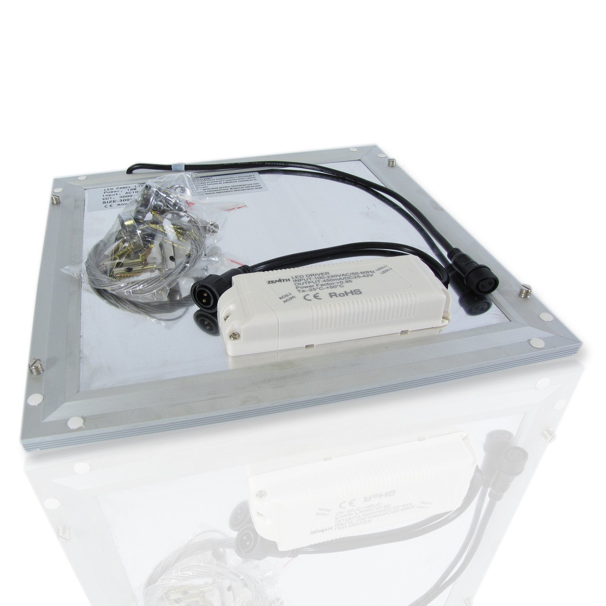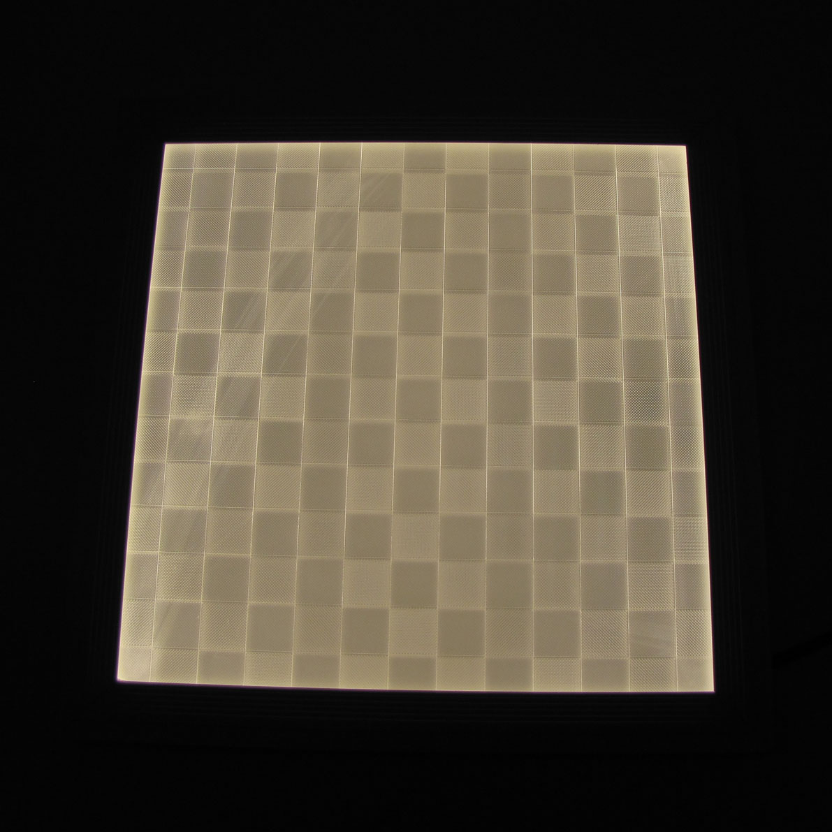 Светодиодная панель. Рассеиватель типа MOSAIK". Размер 300x300мм. Толщина 12мм. Напряжение 100-240V, мощность 18W, цвет свечения теплый белый 3000K, световой поток 1275Lm. Класс защиты IP52. Драйвер в комплекте."
