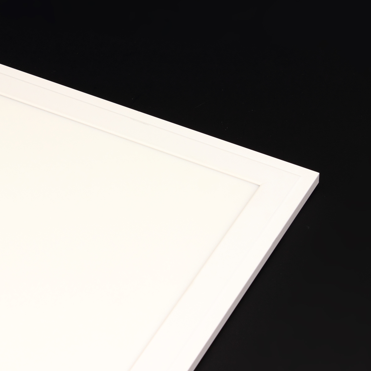 Ультратонкая светодиодная панель. Напряжение 175-265V, мощность 40W, цвет свечения дневной белый 4000-4500K, световой поток 3200Lm. Матовый рассеиватель. Рамка белого цвета. Класс защиты IP20. Размер 595x595х15мм. Драйвер 60-85В 600мА в комплекте. Вес 2700г.