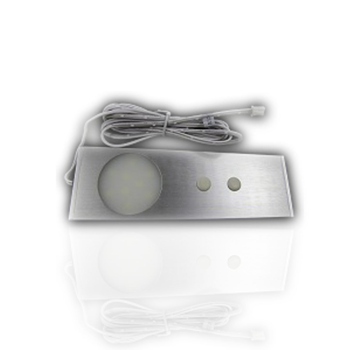 Светильник мебельный с встроенным инфракрасным датчиком движения. Включается при открытии двери. Корпус белый прямоугольный. 10 светодиодов. Напряжение 12V, цвет свечения теплый белый 3000K, световой поток 140Lm. Размеры 156x50x8мм.