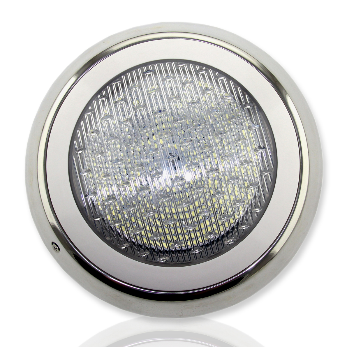Светильник для бассейна. Круглый алюминиевый корпус. Класс защиты IP68. Количество светодиодов 35 штук, тип светодиода 5мм, цвет свечения синий, напряжение 12V, мощность 25W. Диаметр 270мм, высота 70мм.