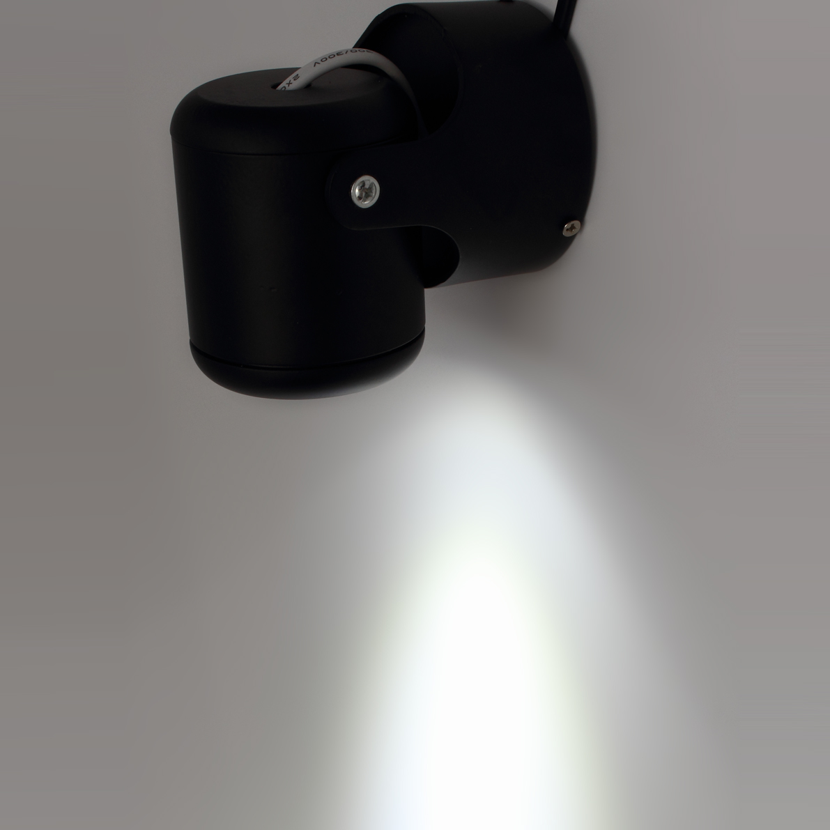 Накладной поворотный светодиодный светильник. Круглый черный корпус. Тип светодиода COB. Напряжение 85-265V, мощность 10W, цвет свечения белый 6000-6500K, световой поток 900Lm, угол свечения 30 градусов. Диаметр 75мм, высота 120мм, Вес 320г.