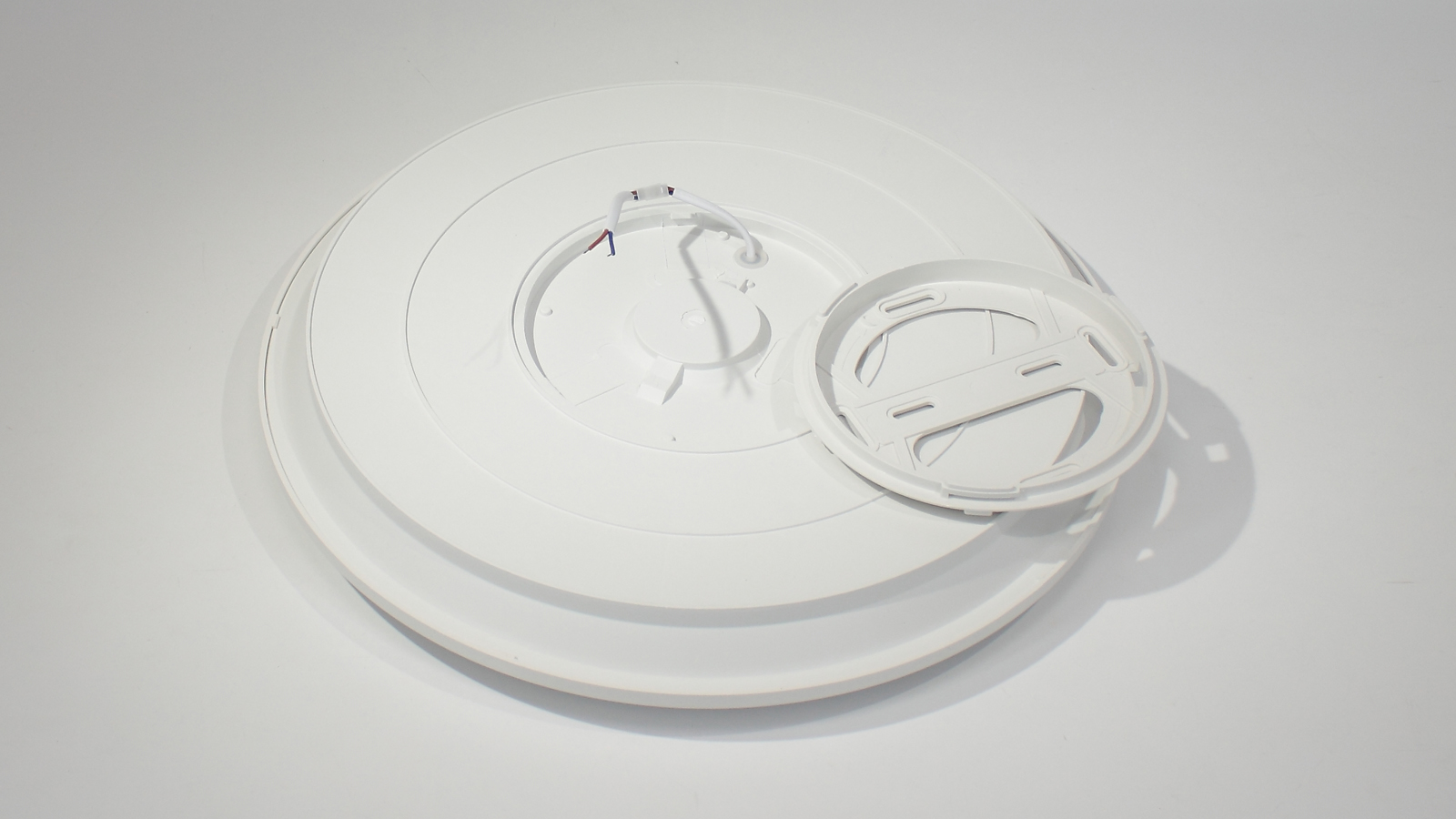 Светильник светодиодный накладной. Круглый пластиковый корпус. Напряжение 85-265V, мощность 24W, цвет свечения теплый белый 3000-3500K, световой поток 1200Lm. Класс защиты IP40. Диаметр 300мм, высота 60мм. Вес 600г. Размеры упаковки 340x340x55мм.