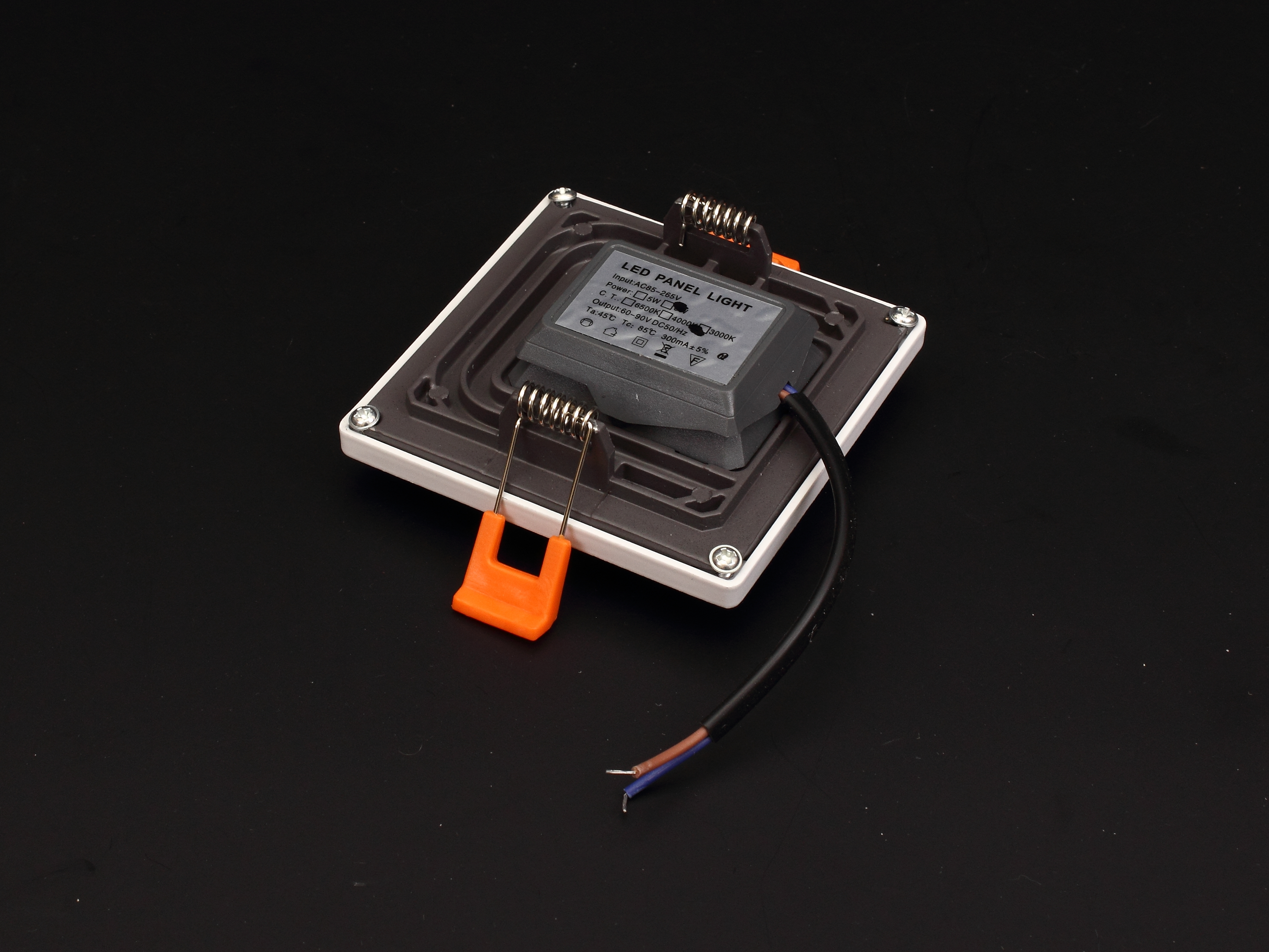 Светодиодный светильник встраиваемый, квадратный, ультратонкий, узкая рамка. Цвет корпуса белый. Напряжение 85-265V, мощность 8W, цвет свечения теплый белый 3000-3500K, световой поток 800Lm, угол свечения 120 градусов. Размеры 88х88х30мм. Установочный размер 75х75мм. Вес 150гр.