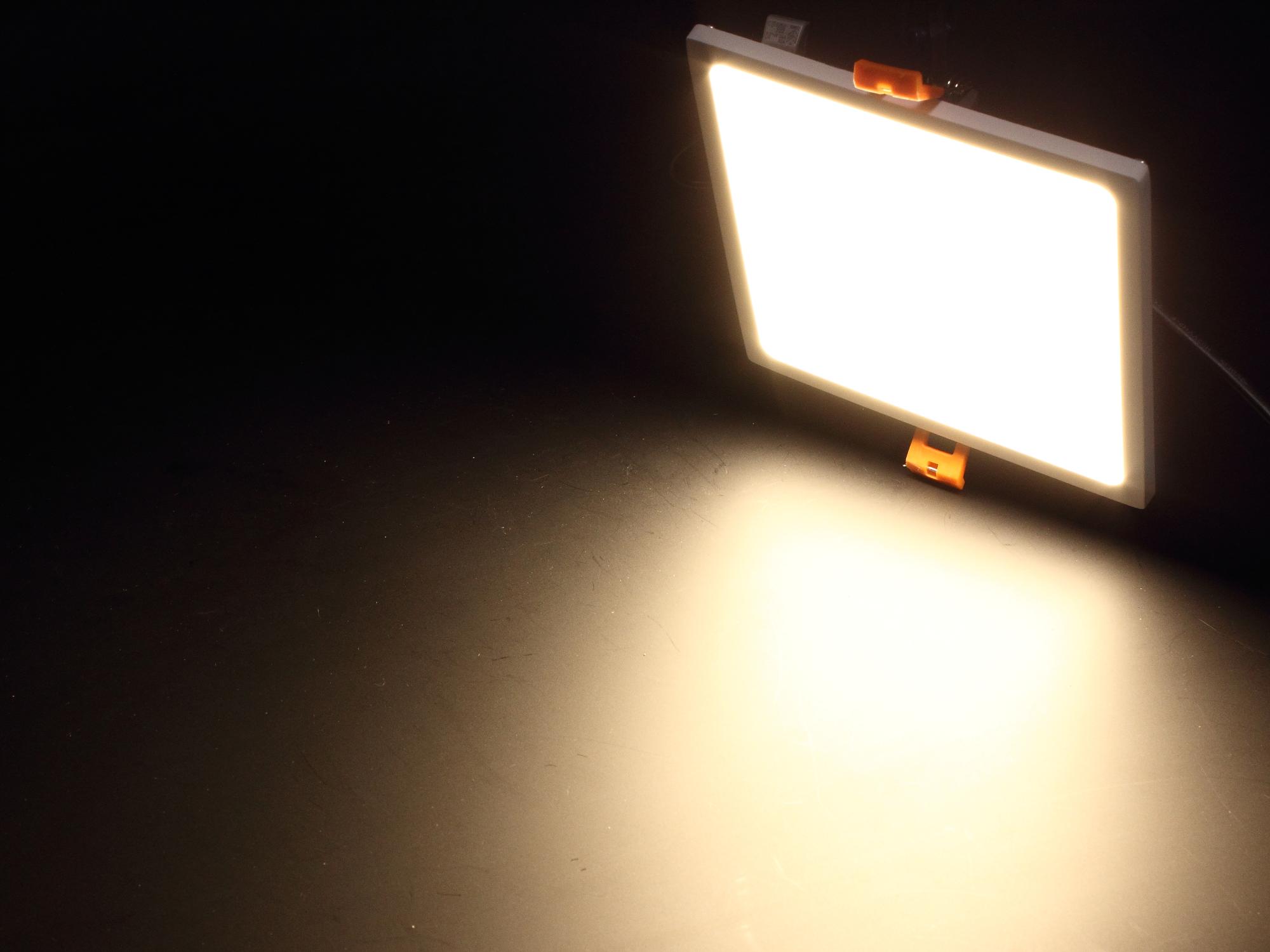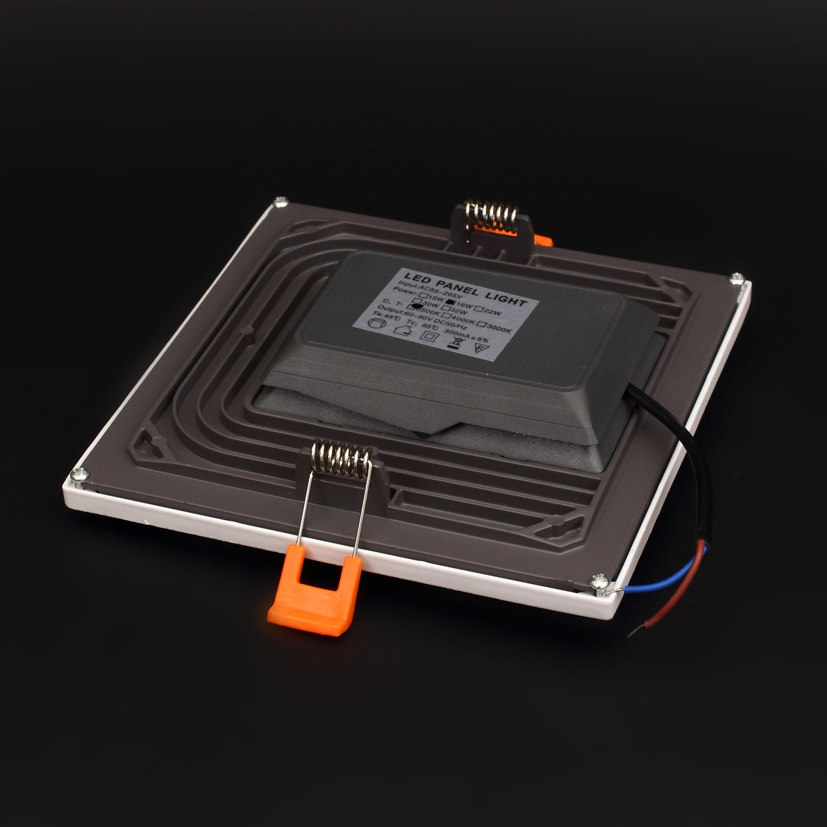 Светодиодный светильник встраиваемый, ультратонкий, узкая рамка. Цвет корпуса белый. Напряжение 85-265V, мощность 16W, цвет свечения теплый белый 3000-3500K, световой поток 1600Lm, угол свечения 120 градусов. Размеры 145х145х30мм. Установочный размер 130х130мм. Вес 350г.