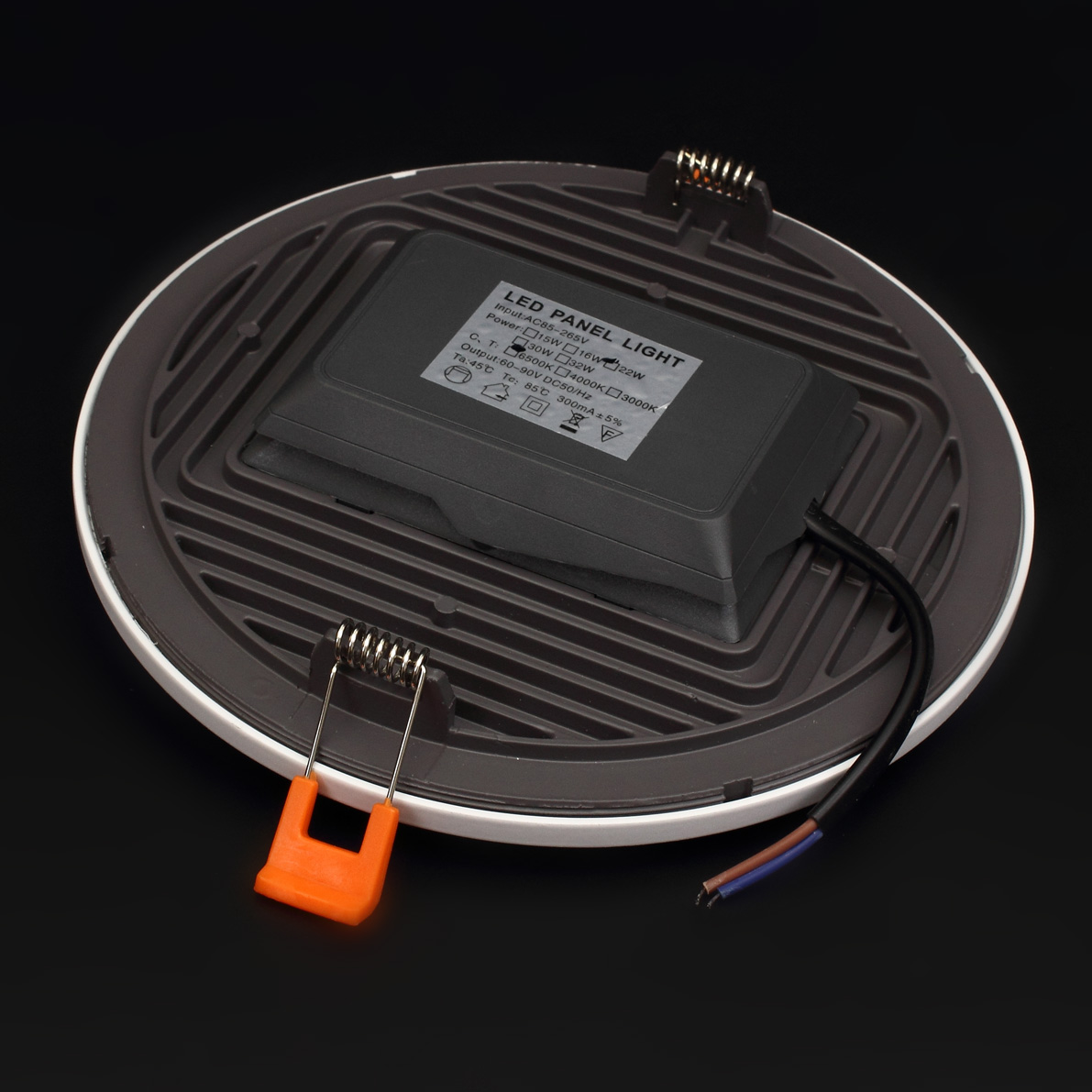 Светодиодный светильник встраиваемый, круглый, ультратонкий, узкая рамка. Цвет корпуса белый. Напряжение 85-265V, мощность 22W, цвет свечения белый 6000-6500K, световой поток 2200Lm, угол свечения 120 градусов. Диаметр 170мм, высота 30мм. Установочный диаметр 150мм. Вес 360г.