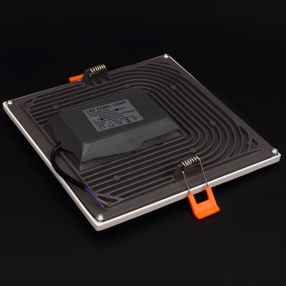 Светодиодный светильник встраиваемый, квадратный, ультратонкий, узкая рамка. Цвет корпуса белый. Напряжение 85-265V, мощность 22W, цвет свечения теплый белый 3000-3500K, световой поток 2200Lm, угол свечения 120 градусов. Размеры 170х170х30мм. Установочный размер 150х150мм. Вес 450г.