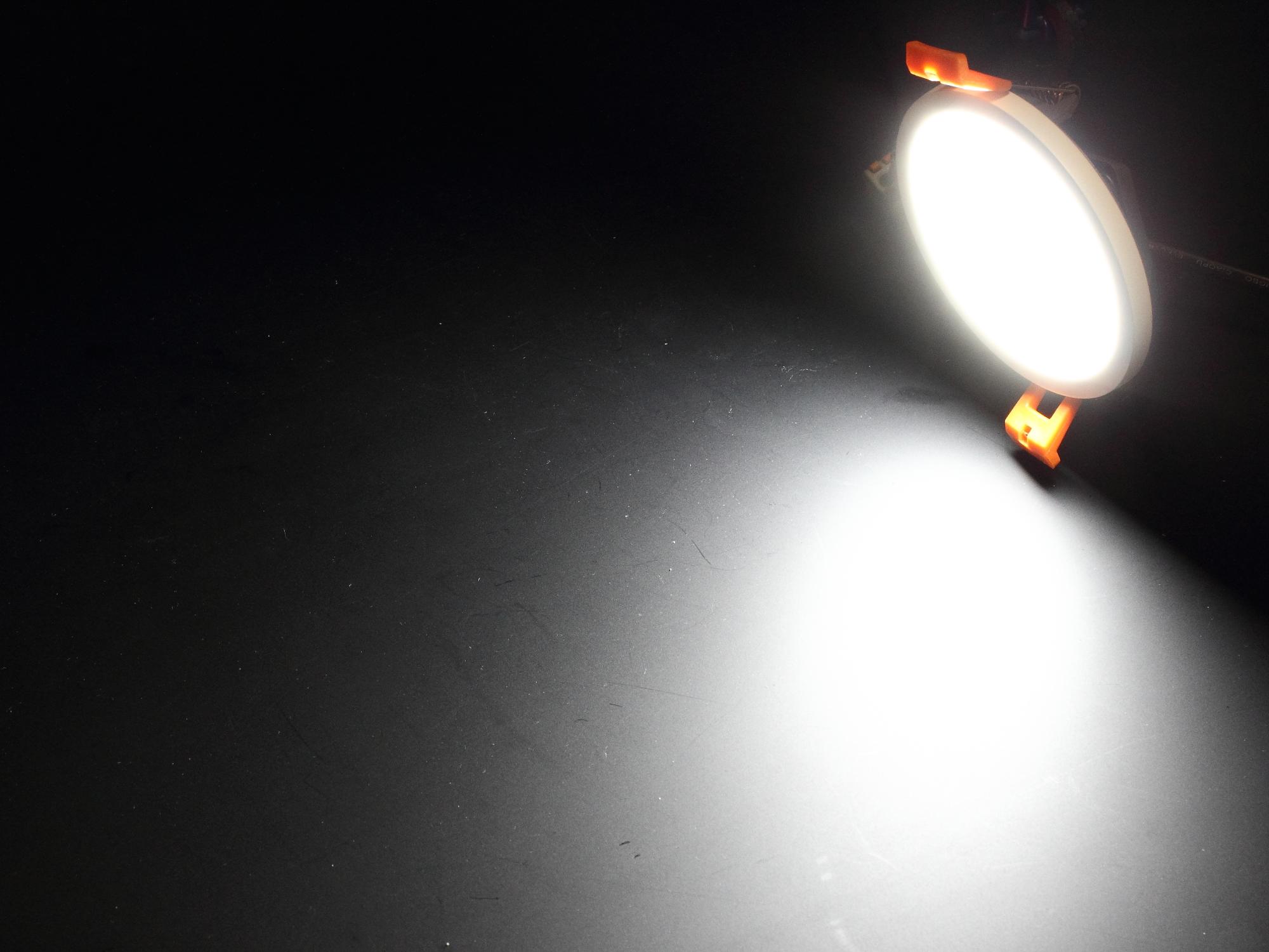 Светодиодный светильник встраиваемый, круглый, ультратонкий, узкая рамка. Цвет корпуса белый. Напряжение 85-265V, мощность 8W, цвет свечения белый 6000-6500K, световой поток 800Lm, угол свечения 120 градусов. Диаметр 88мм, высота 30мм. Установочный диаметр 75мм. Вес 130г.