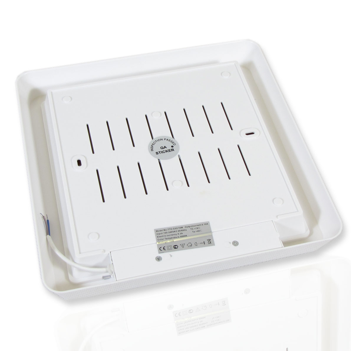 Светильник накладной. Квадратный пластиковый корпус. Напряжение 110-240V, мощность 16W,цвет свечения дневной белый 4000K, световой поток 1430Lm. Класс защиты IP44. Размеры 270x270мм.