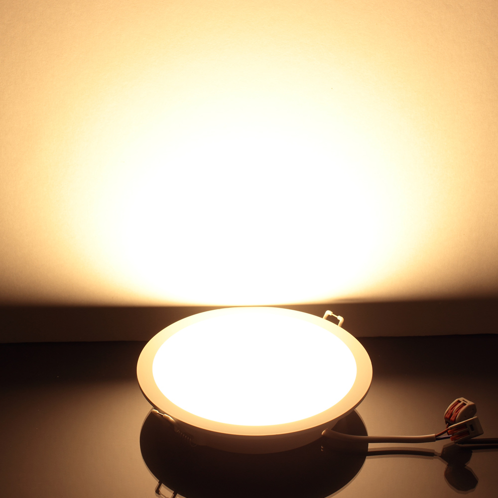 Светодиодный светильник встраиваемый. Круглый белый пластиковый корпус. Напряжение 185-265V, мощность 15W, цвет свечения теплый белый 3000K,световой поток 1200Lm, угол свечения 110 градусов. Индекс цветопередачи CRI>80. Диаметр 170мм, высота 32мм. Установочный диаметр 155мм. Размеры упаковки 175x175x45мм. Вес 170г.