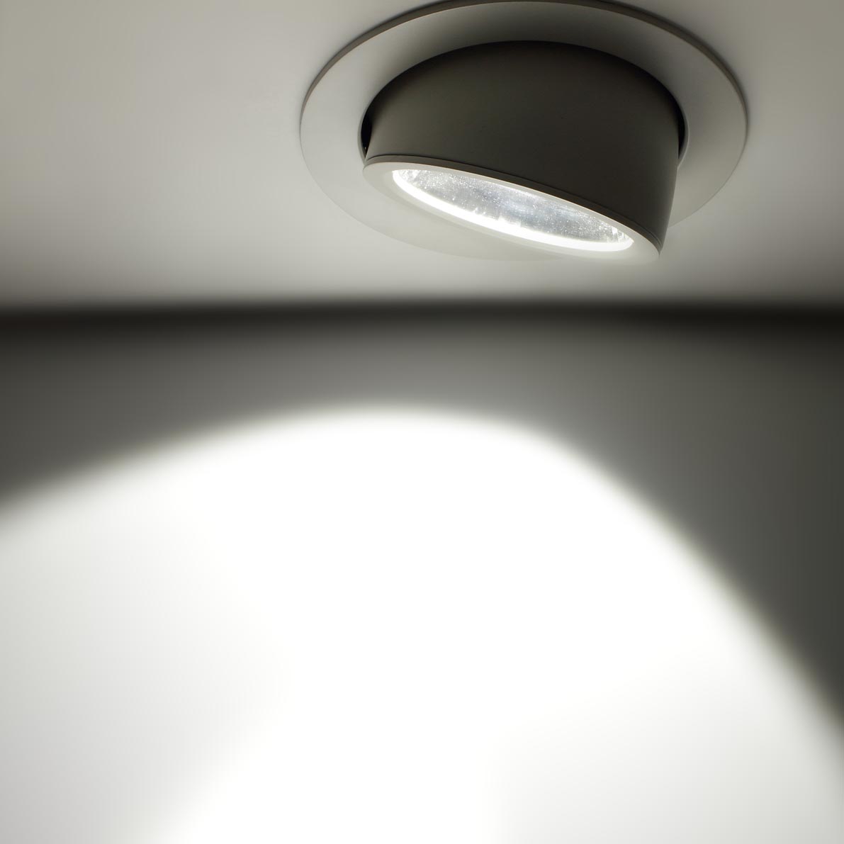 Точечный светодиодный светильник. Поворотный. Корпус круглый, белый. Светодиоды COB. Напряжение 200-240V, мощность 30W, цвет свечения белый 5000-5500K, регулируемый угол свечения 90 градусов, световой поток 3820Lm. Диаметр 195мм, высота 185мм. Установочный диаметр 175мм.