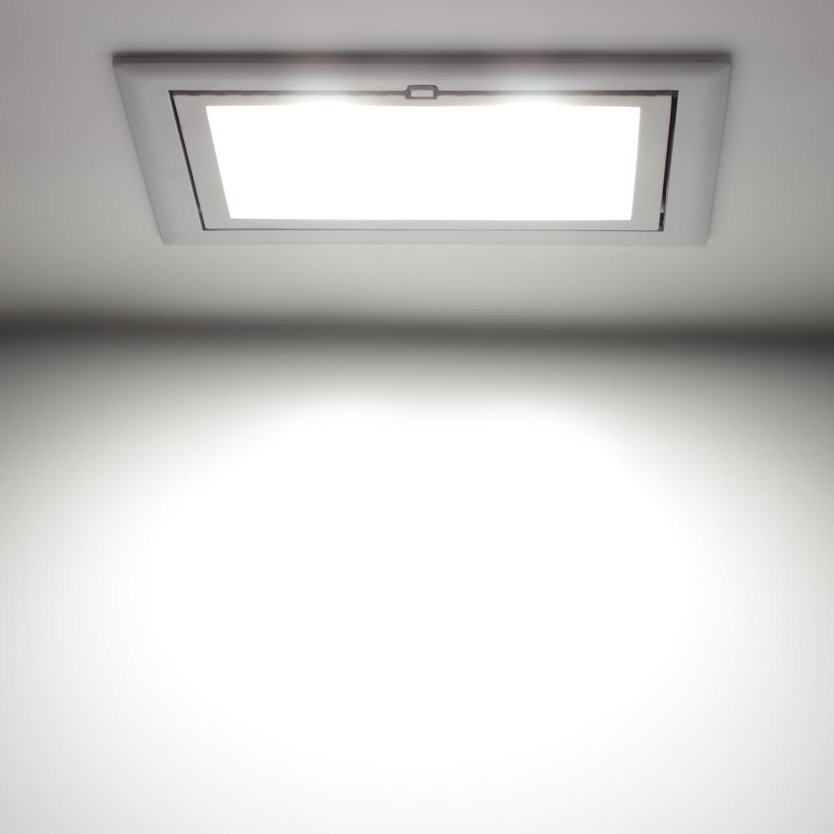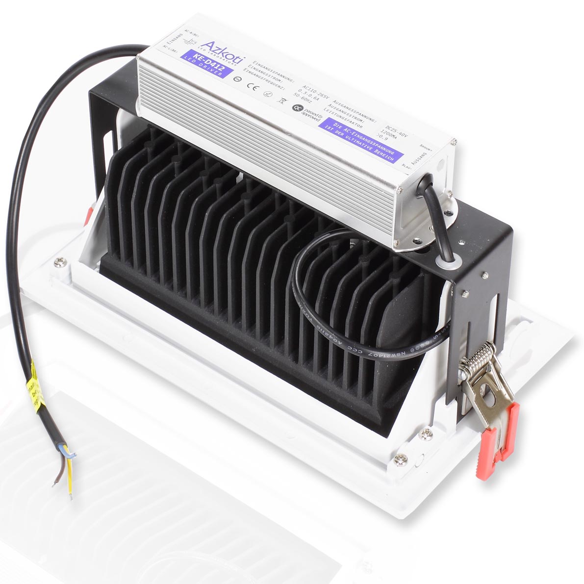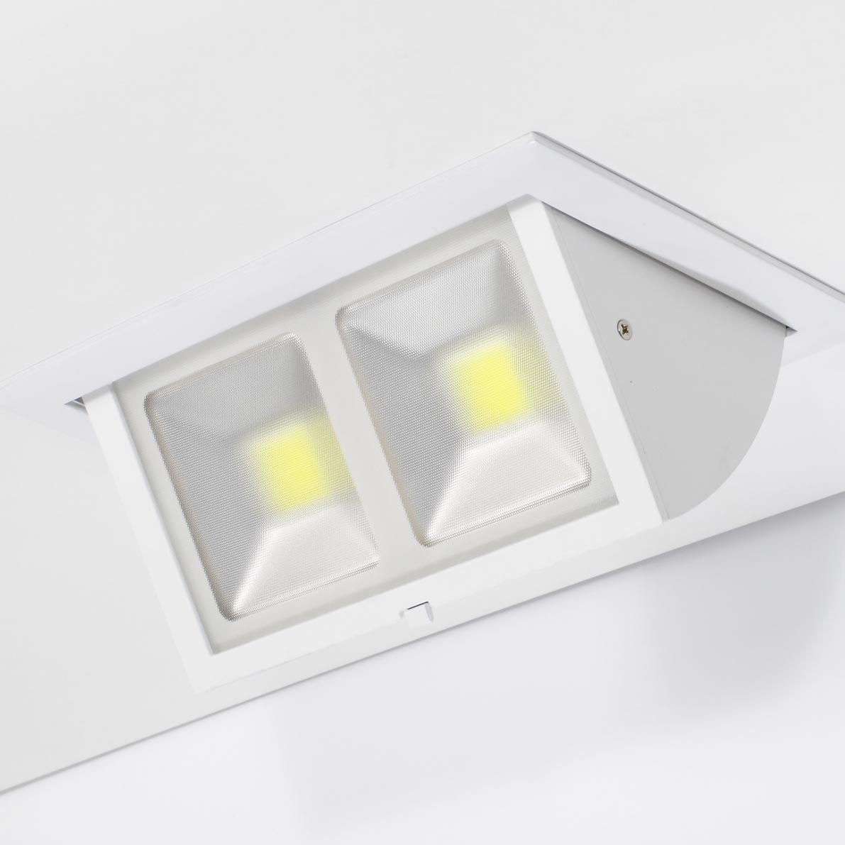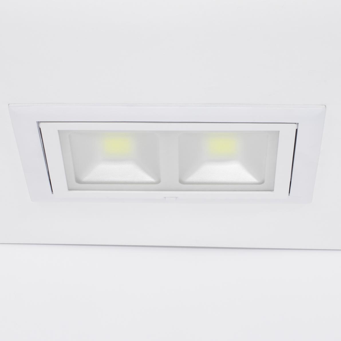 Поворотный светодиодный светильник. Корпус прямоугольный, белый. Прозрачное стекло. Светодиоды COB, 2шт по 20W. Напряжение 85-260V, мощность 48W, цвет свечения белый 5500-6000K, угол свечения 90-120 градусов, световой поток 4000Lm. Размеры 240x145x135мм. Установочные размеры 225x125мм.
