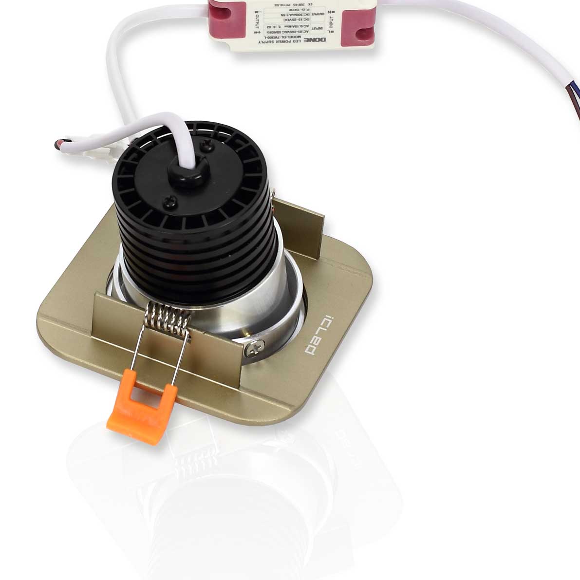 Светодиодный светильник встраиваемый. Прямоугольный корпус. Цвет корпуса матированная бронза. Напряжение 85-265V, мощность 7W, цвет свечения теплый белый 3000-3500K, коэффициент цветопередачи CRI>80, световой поток 700Lm. Угол свечения 60 градусов, регулируемый угол наклона. Размер 98х98мм, высота 75мм. Установочный размер 85х85мм. Вес 260гр.