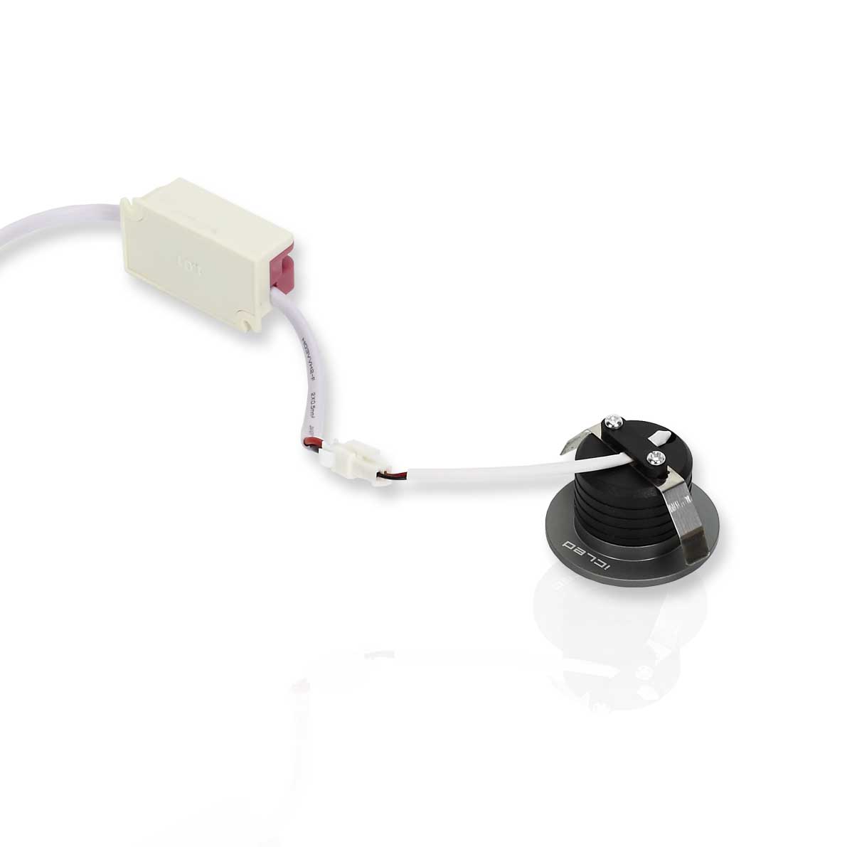 Светодиодный светильник встраиваемый. Круглый корпус. Цвет корпуса серый. Напряжение 85-265V, мощность 3W, цвет свечения дневной белый 4000-4500K, коэффициент цветопередачи CRI>80, световой поток 300Lm, угол свечения 60 градусов. Диаметр 47мм, высота 35мм. Установочный диаметр 40мм. Вес 65гр.