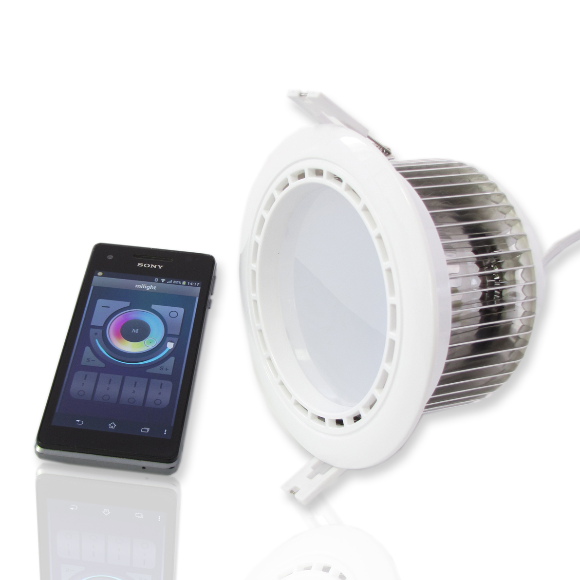 Точечный светодиодный светильник. Напряжение 220V, мощность 12W, цвет свечения RGBW, возможность управления с пульта арт.53050. Диаметр 145мм, высота 80мм.