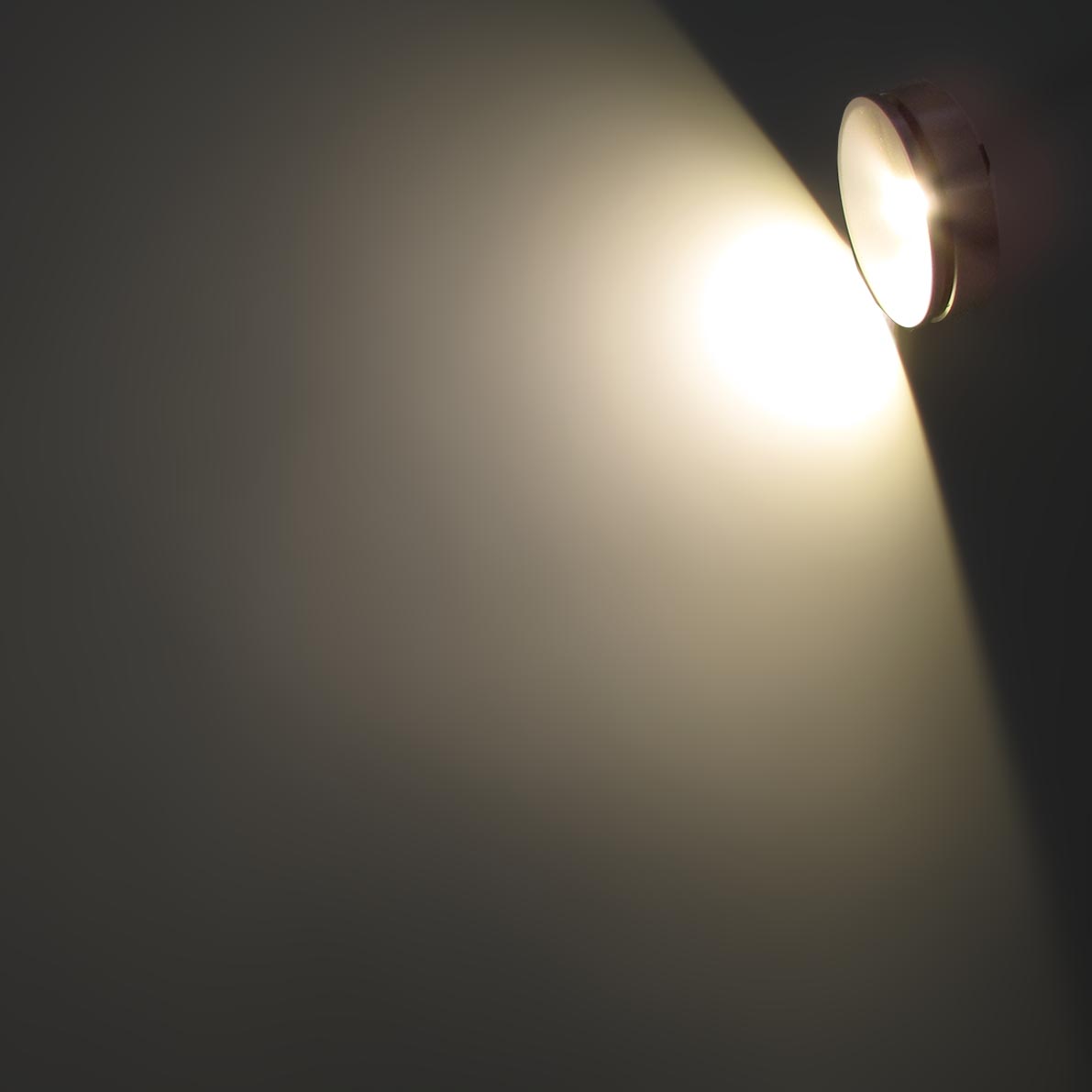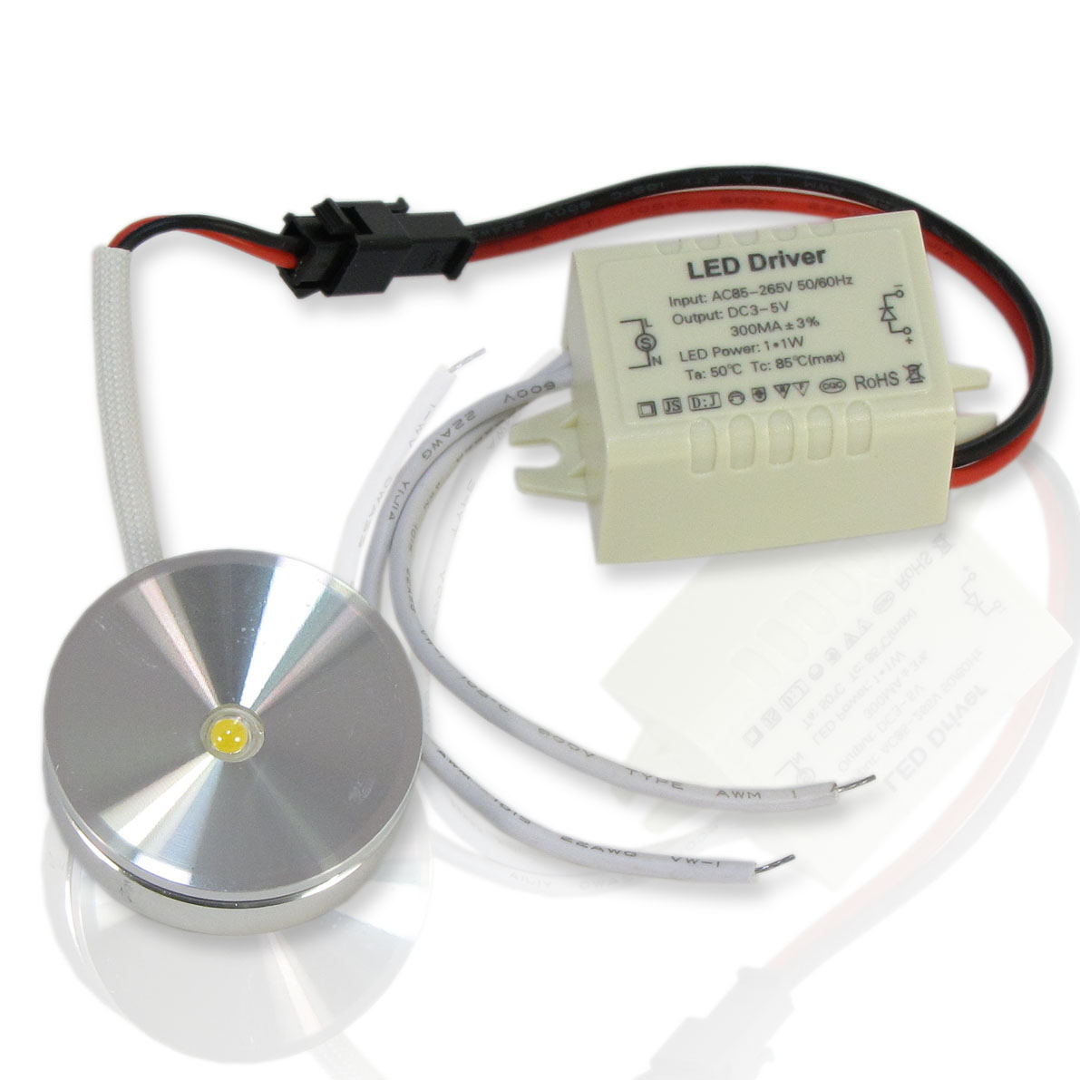 Точечный светодиодный светильник. Тип светодиода emmiter 1W - 1штука, цвет свечения теплый белый 3000-3200K, световой поток 100Lm, серебристый корпус. Напряжение 220V, мощность 1W, драйвер в комплекте. Диаметр 38мм.