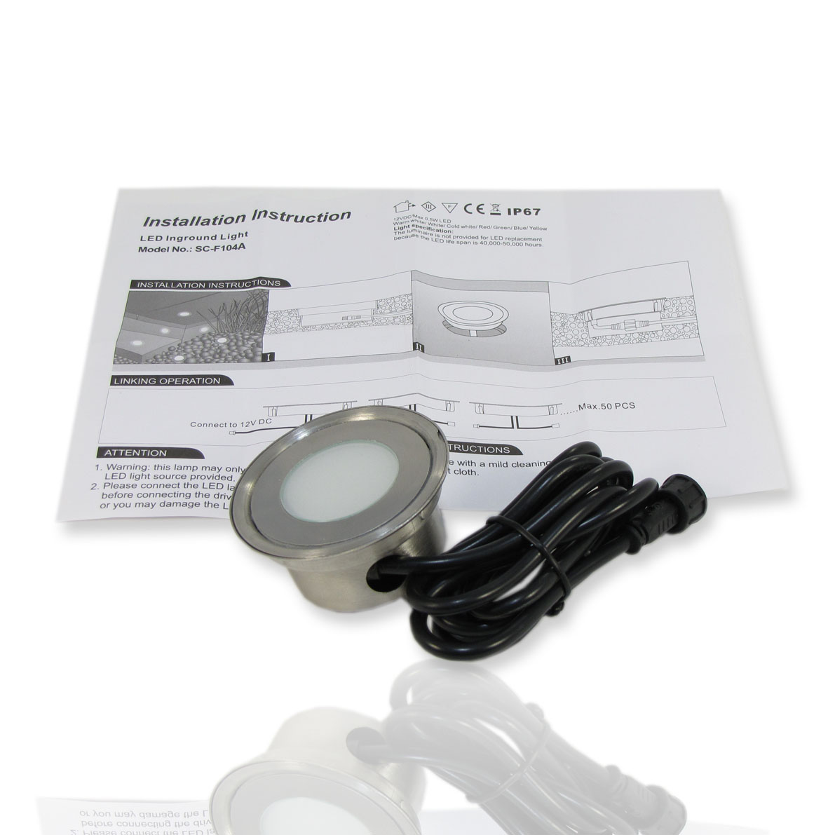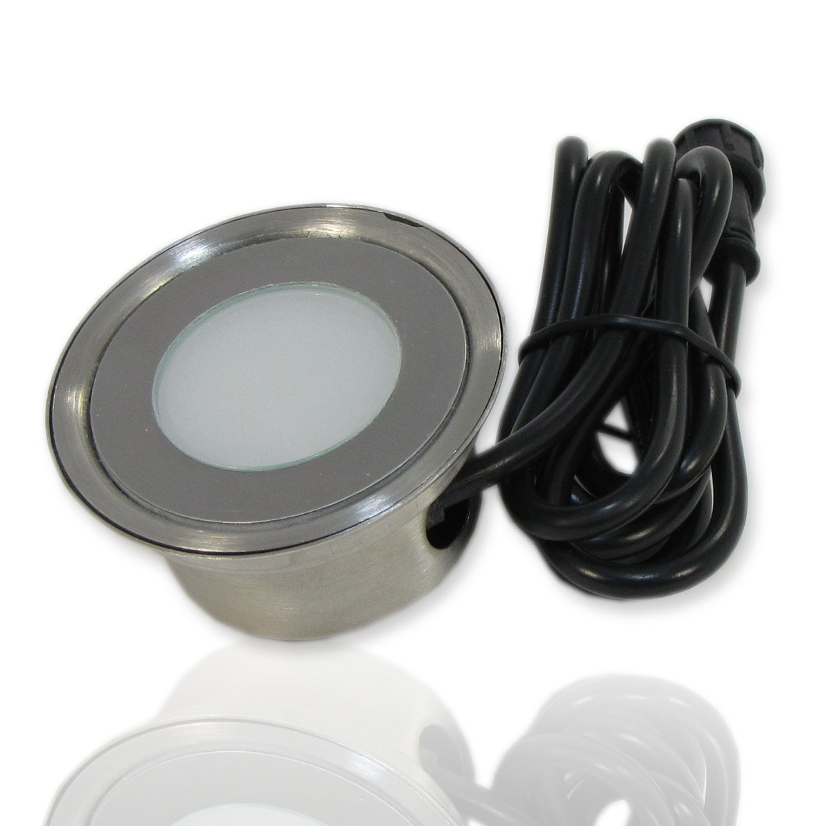 Светодиодный точечный светильник. Корпус круглый, нержавеющая сталь. Входное напряжение 12V, мощность 0,5W, цвет свечения белый 6000K, световой поток 50Lm. Класс защиты IP67. Диаметр 60мм, высота 29,5мм.