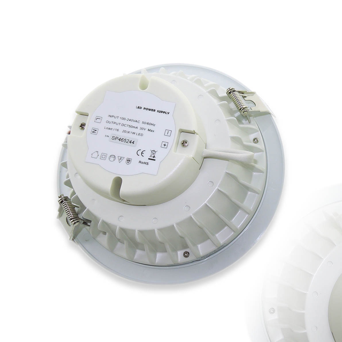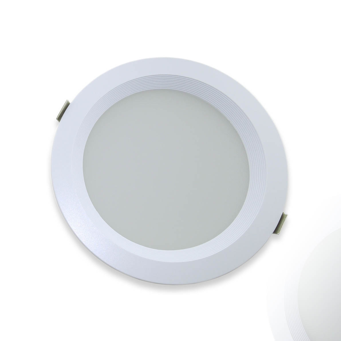 Точечный светодиодный светильник. Корпус белый. Матовое стекло. Напряжение 220V, мощность 20W, цвет свечения белый 5800-6100K, световой поток 1700-1900Lm. Диаметр 196мм. Высота 63мм.