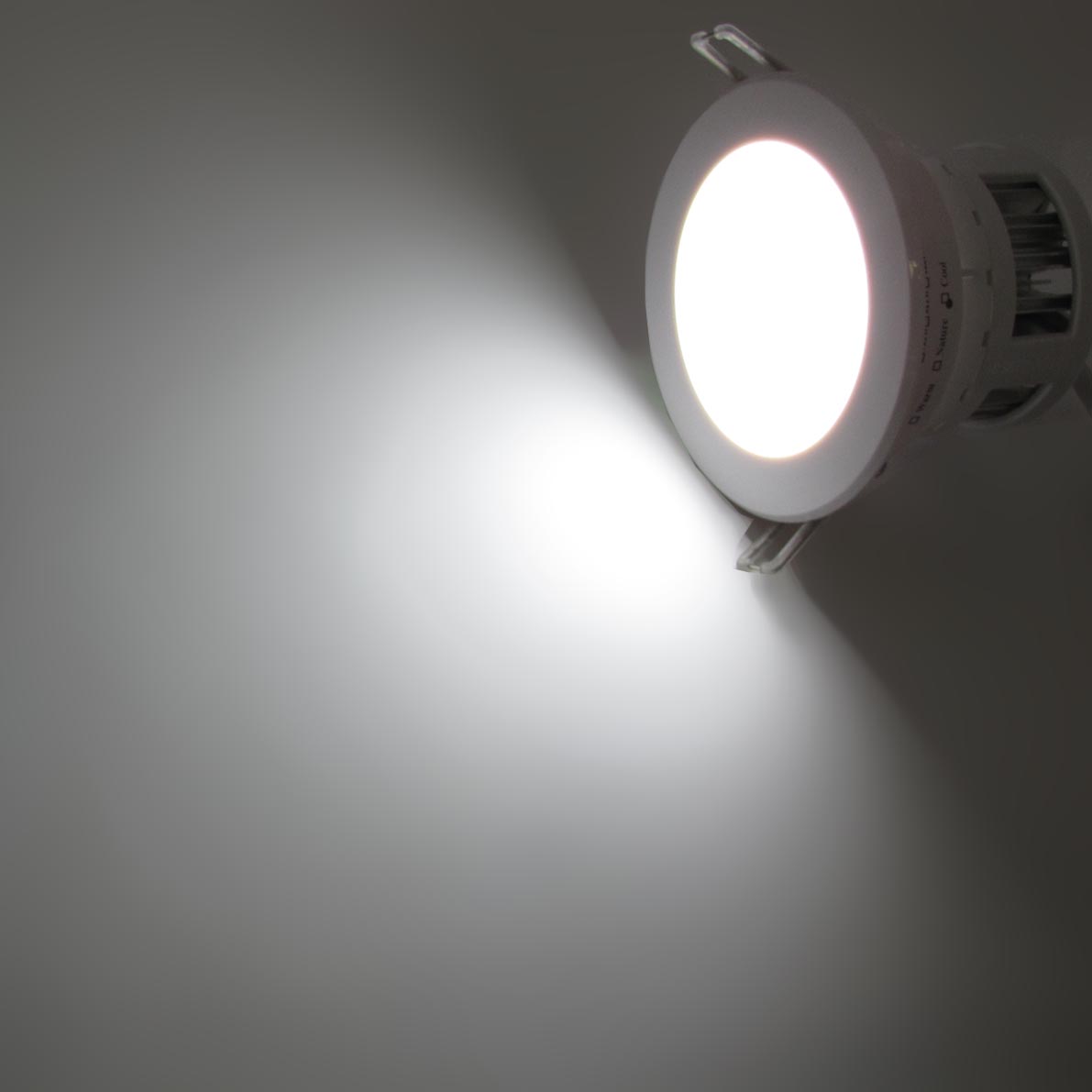 Точечный светодиодный светильник. Корпус белый. Матовое стекло. Напряжение 220V, мощность 5W, цвет свечения белый 5000K, световой поток 360Lm. Размеры