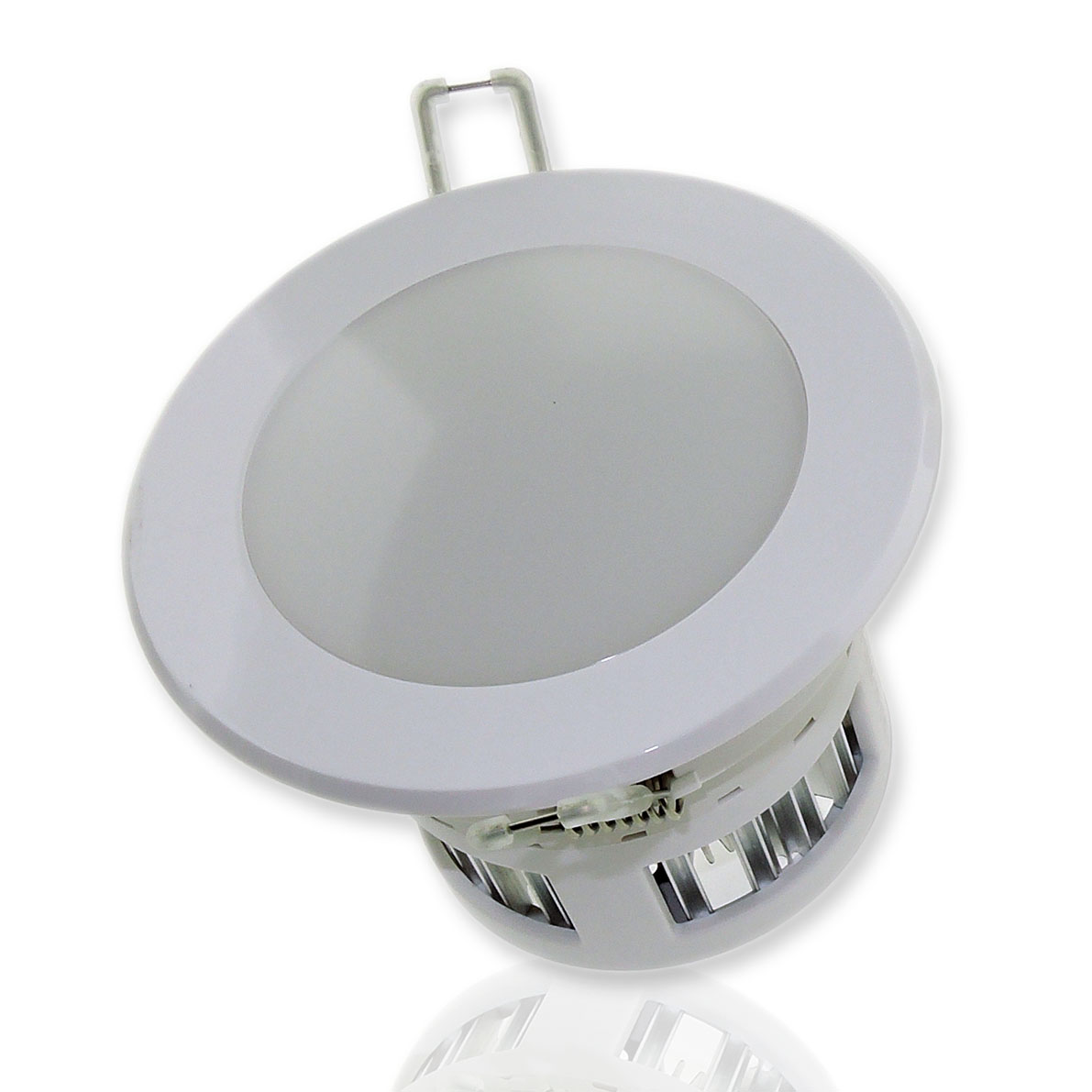 Точечный светодиодный светильник. Корпус белый. Матовое стекло. Напряжение 220V, мощность 7W, цвет свечения белый 5000K, световой поток 450Lm. Размеры 113x78мм.
