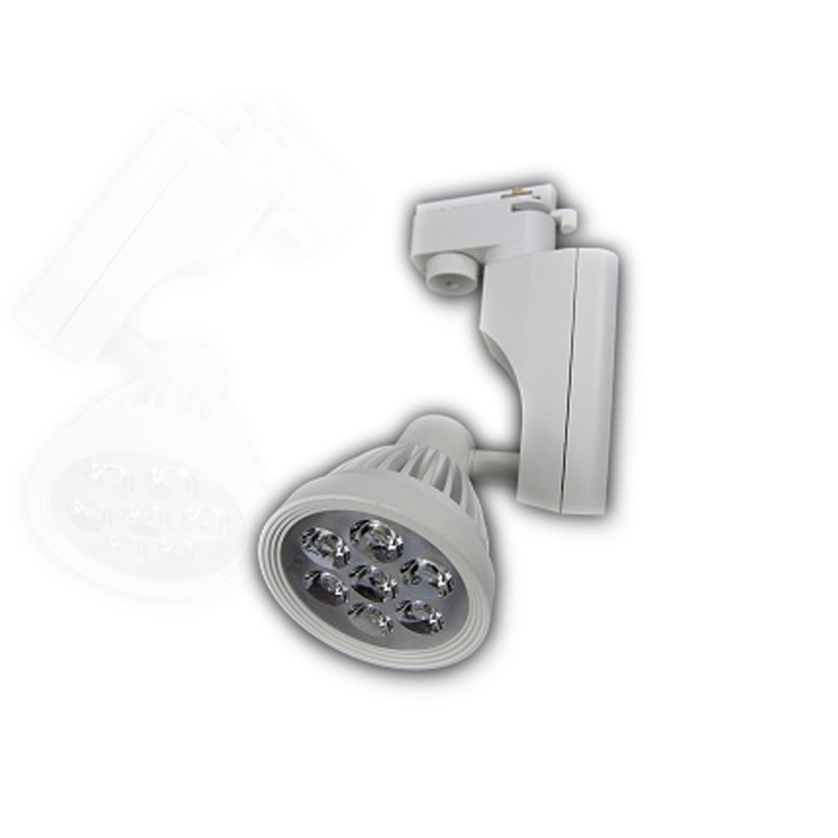 Трековый светильник. Белый цилиндрический корпус. Напряжение 220V, мощность 7W, цвет свечения белый 6000-6300K, световой поток 630-700Lm. Класс защиты IP20. Диаметр 80мм.