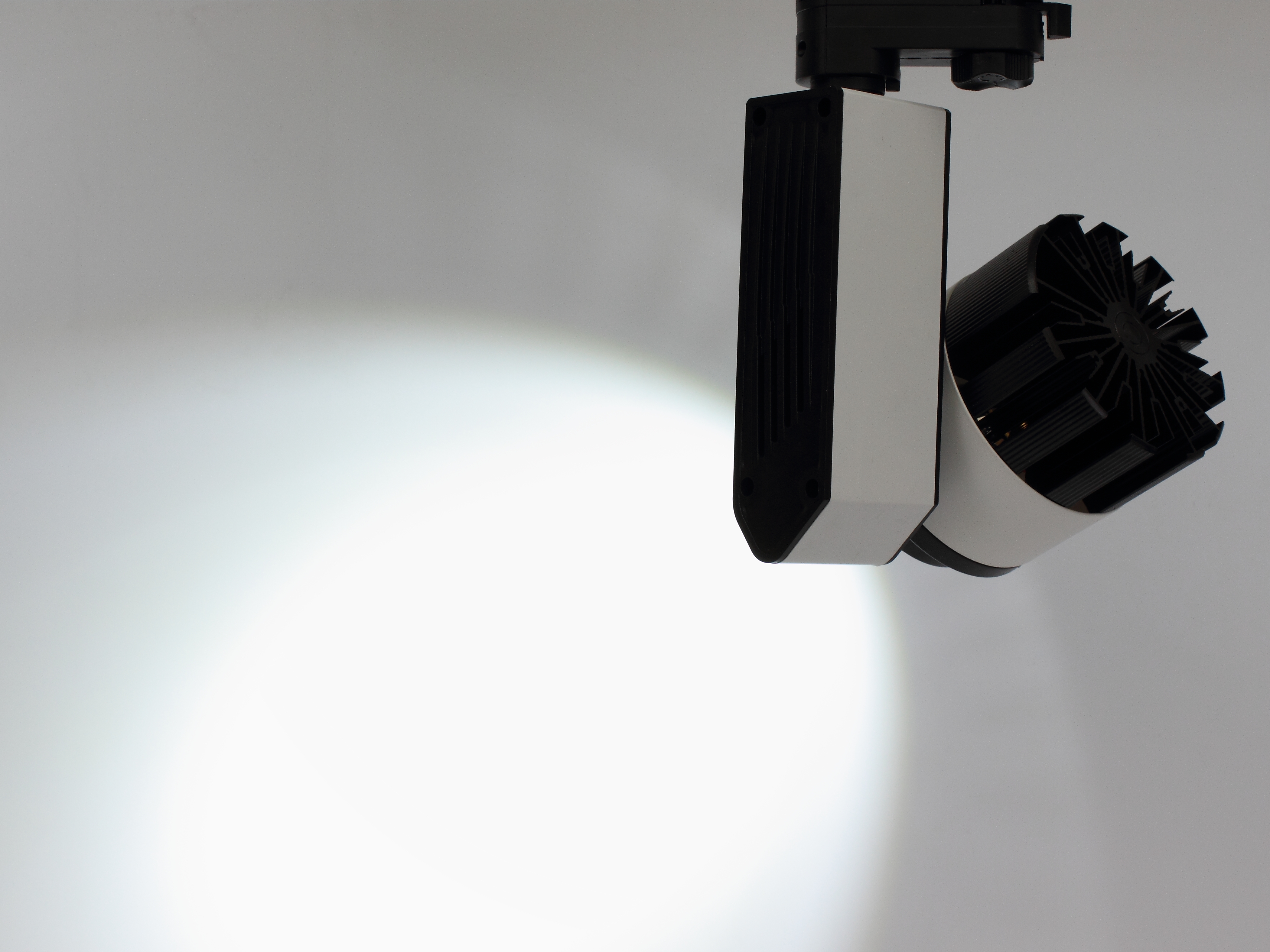 Трековый светильник. Белый с черными вставками корпус. Технология COB. Напряжение 85-265V, мощность 20W, цвет свечения белый 5000K, световой поток 2000Lm. Угол свечения 60 градусов. Класс защиты IP40. Устанавливается на четырехпроводной шинопровод. Возможность подключения до трех групп светильников на одном трековом шинопроводе. Размеры 120x170x240мм. Вес 650гр.
