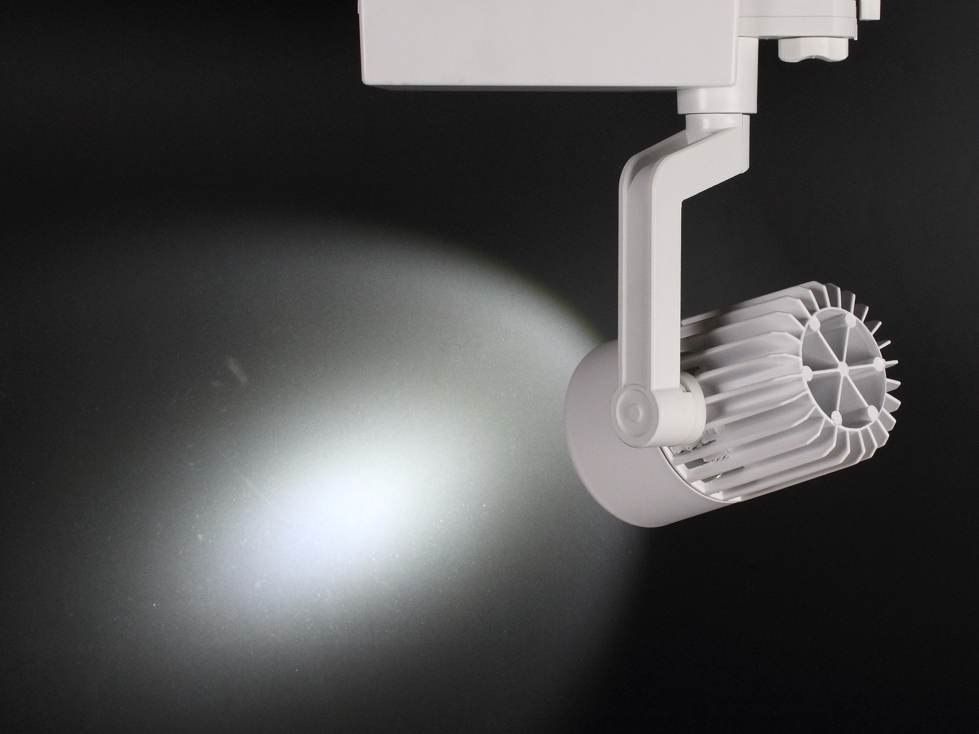 Трековый светильник. Белый корпус. Технология COB. Напряжение 85-265V, мощность 20W, цвет свечения белый 5000K, световой поток 2000Lm. Угол свечения 30 градусов. Класс защиты IP40. Устанавливается на четырехпроводной шинопровод. Возможность подключения до трех групп светильников на одном трековом шинопроводе. Размеры 200x120x290мм. Вес 650гр.