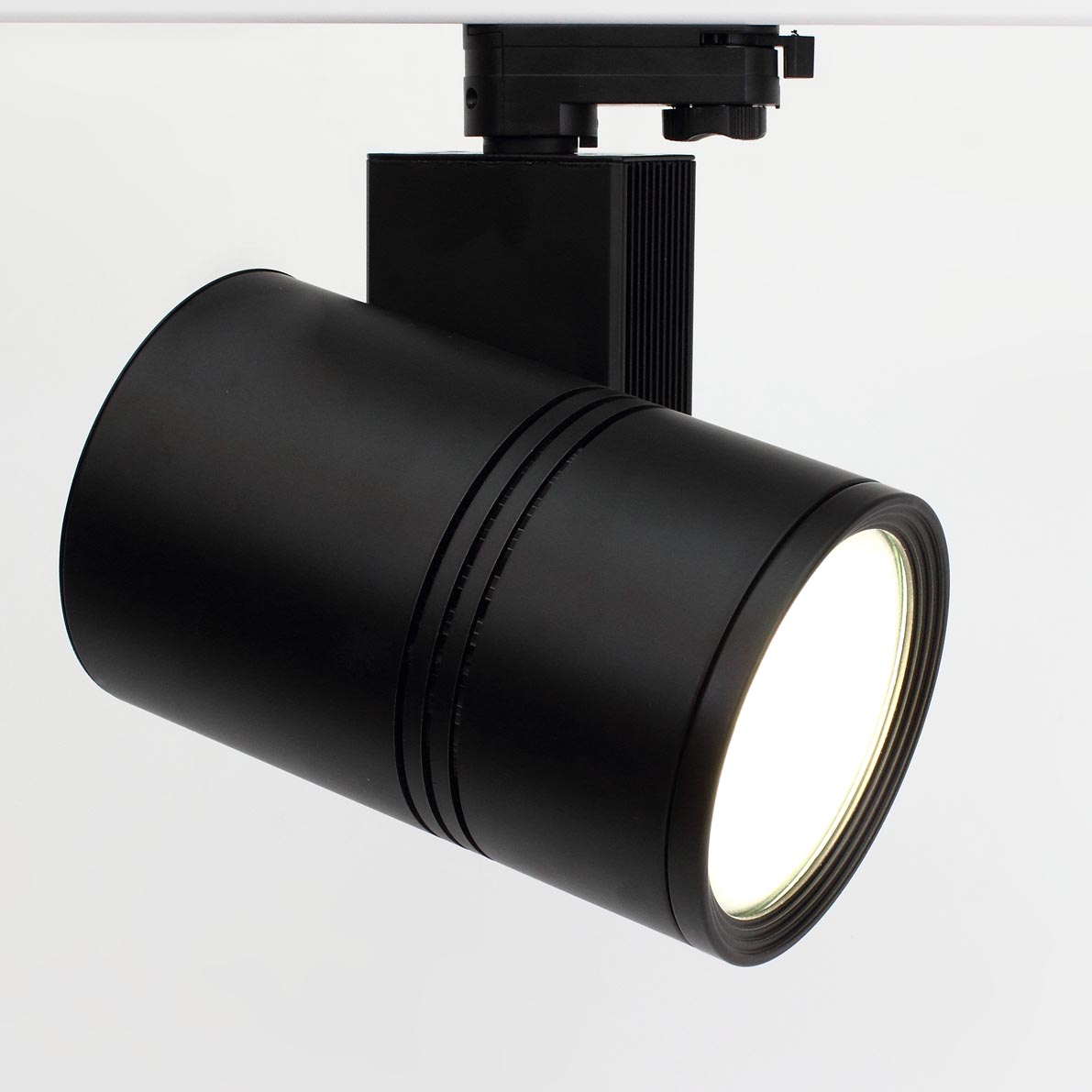 Трековый светильник. Черный корпус. Технология COB. Напряжение 85-265V, мощность 30W, цвет свечения теплый белый 3000K, световой поток 3000Lm. Угол свечения 30 градусов. Класс защиты IP40. Устанавливается на четырехпроводной шинопровод. Возможность подключения до трех групп светильников на одном трековом шинопроводе. Размеры 190x180x200мм. Вес 1100гр.