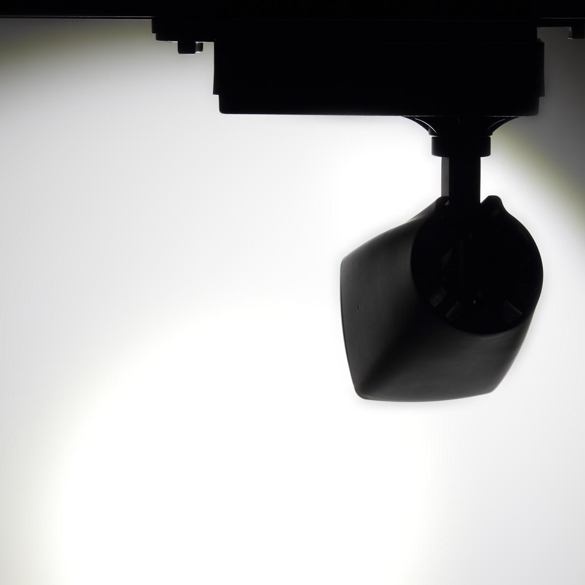 Трековый светильник. Черный корпус. Технология COB. Напряжение 85-265V, мощность 10W, цвет свечения белый 6000K, световой поток1000Lm. Угол свечения 45 градусов. Класс защиты IP20. Размеры 170x70x160мм.