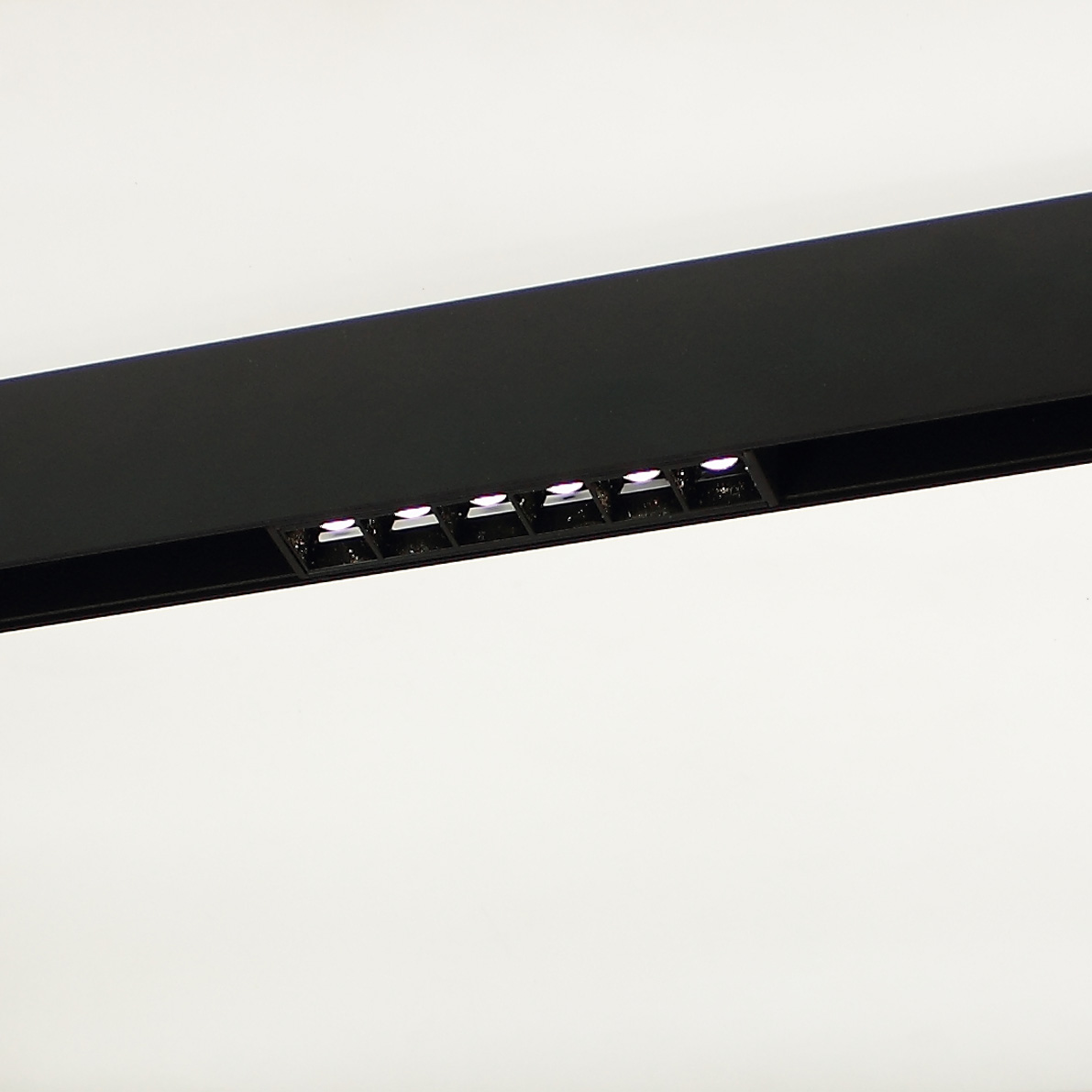 Светодиодный светильник трековый, магнитный 20мм. Черный корпус из алюминиевого сплава. Напряжение 48V, мощность 6W, цвет свечения дневной белый 4000-4200K, коэффициент цветопередачи CRI>90, световой поток 450Lm. Угол свечения 24 градусов. Класс защиты IP20. Размеры светильника 112x22x42мм. Размеры упаковки 150х85х40мм. Вес 150г. Гарантия 3 года. Магнитные трековые системы- это дальнейшее развитие трековых систем. Более надежная установка светильника в любом месте трека. Высокий коэффициент цветопередачи в каждом светильнике. Стильные, утонченные корпуса используют для освещения жилых, офисных, торговых помещений.