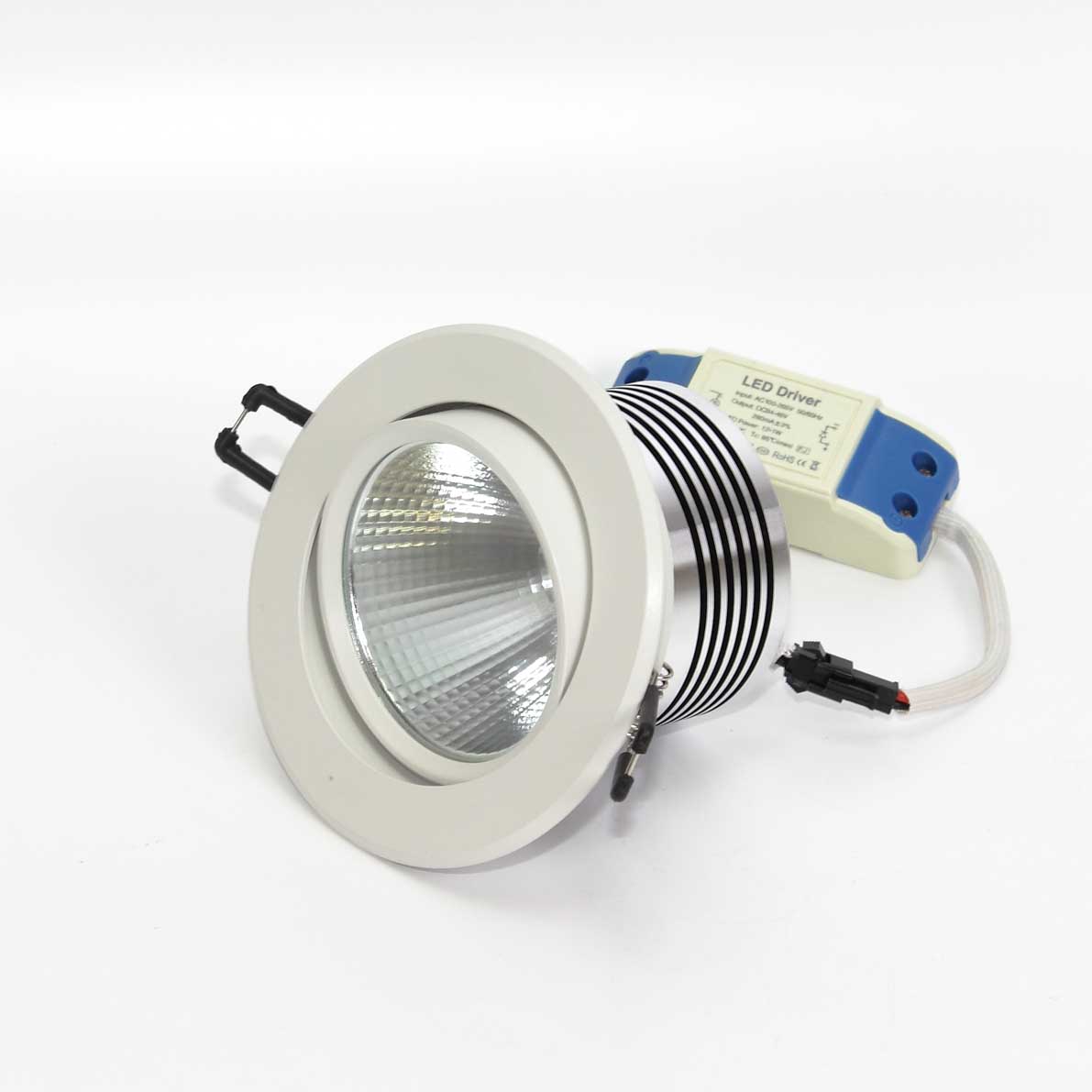 Светодиодный светильник. Круглый белый корпус. Напряжение 100-265V, мощность 10W, цвет свечения дневной белый 4000-4500K, световой поток 1200Lm, угол свечения 60 градусов. Диаметр 110мм, высота 75мм. Установочный диаметр 95мм.
