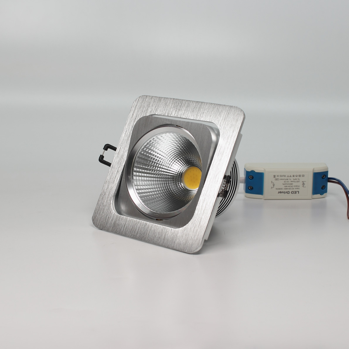 Светодиодный светильник. Квадратный серебрянный корпус. Напряжение 100-265V, мощность 10W, цвет свечения дневной белый 4000-4500K, световой поток 1200Lm, угол свечения 60 градусов. Размер 120х120х80мм. Установочный размер 105х105мм. Комплектуется драйвером 34-46В, 280мА.Вес 500г.